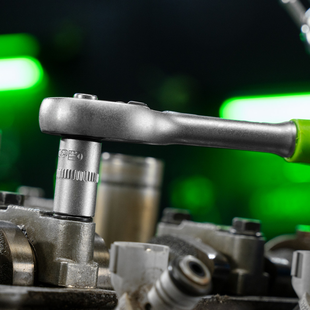 • Комфортная и эффективная работа — ключи-трещотки с 45 зубьями оснащены механизмом быстрого сброса, переключателем реверса с металлическим флажком и двухкомпонентной рукояткой.