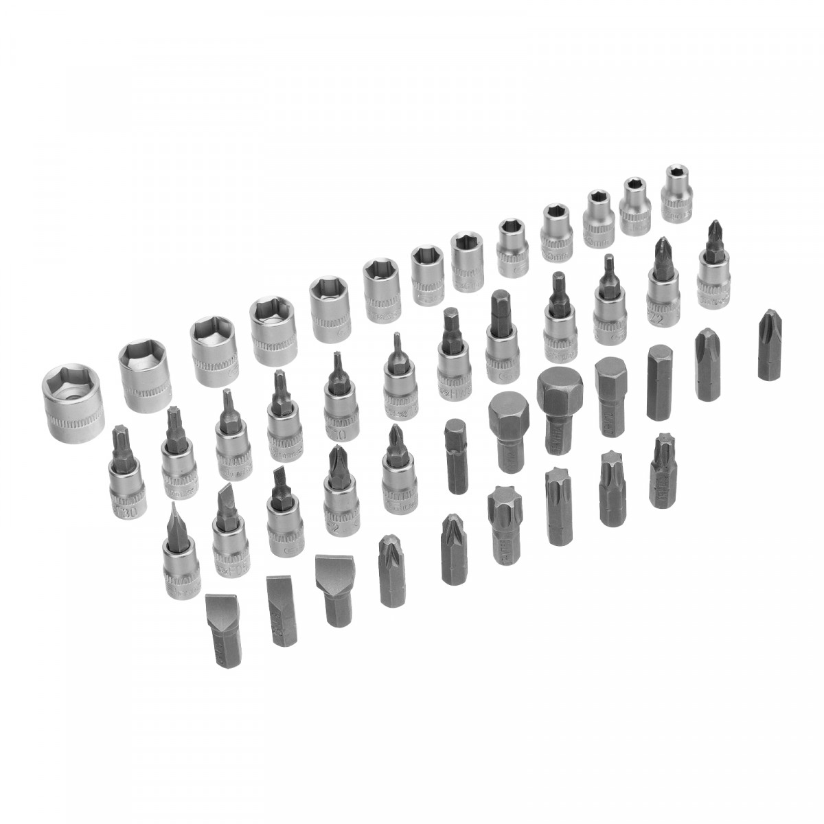Набор инструментов Сибртех 13388 упакован в пластиковый кейс и состоит из 94 предметов с присоединительным размером 1/2" и 1/4", предназначенных для монтажа и демонтажа резьбового крепежа с разными типами шлицев. В комплект поставки входят карданы, удлинители и переходники, облегчающие работу в труднодоступных местах. Набор используется для ремонта автомобилей, а также полезен в быту.