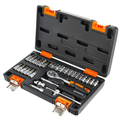 Набор инструментов 1/4 дюйма, CrV, пластиковый кейс 29 предмета Вихрь 73/6/7/1 подойдет для работ с крепежом. В состав входит эргономичная трещоточная рукоятка.