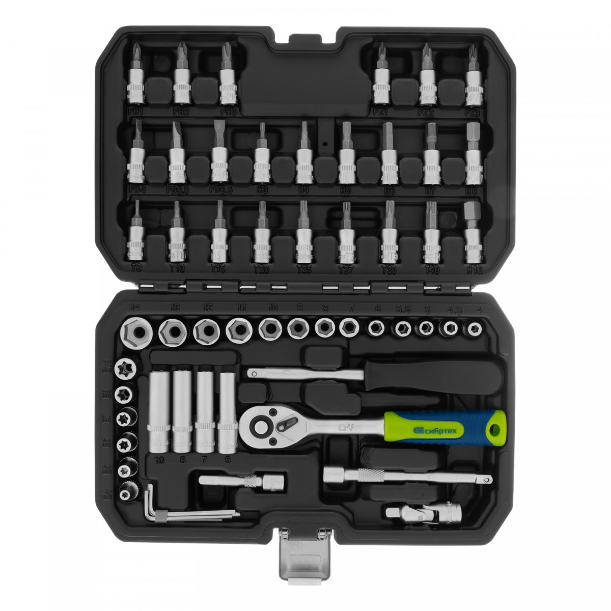 Набор инструментов, 1/4", пластиковый кейс 56 предметов Сибртех