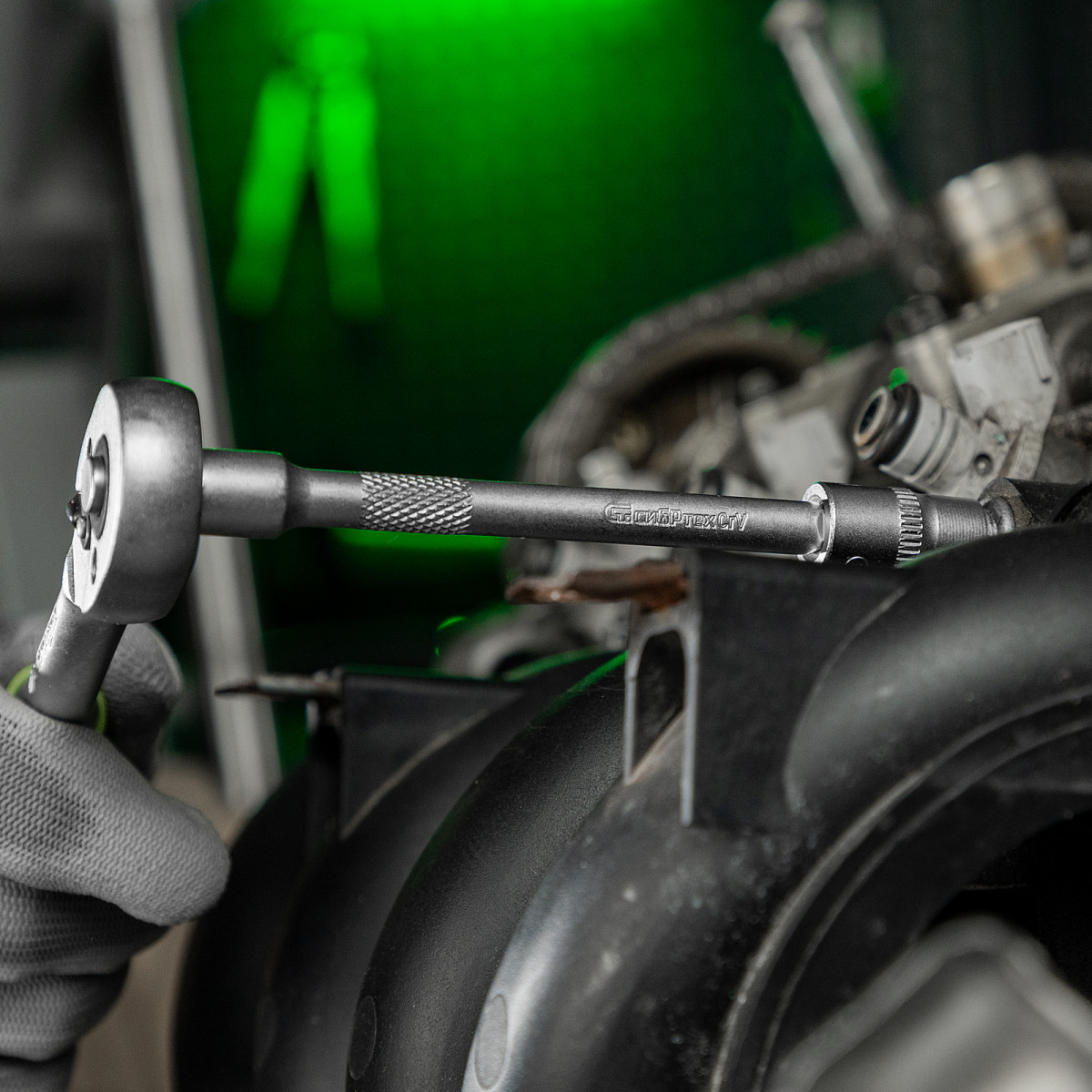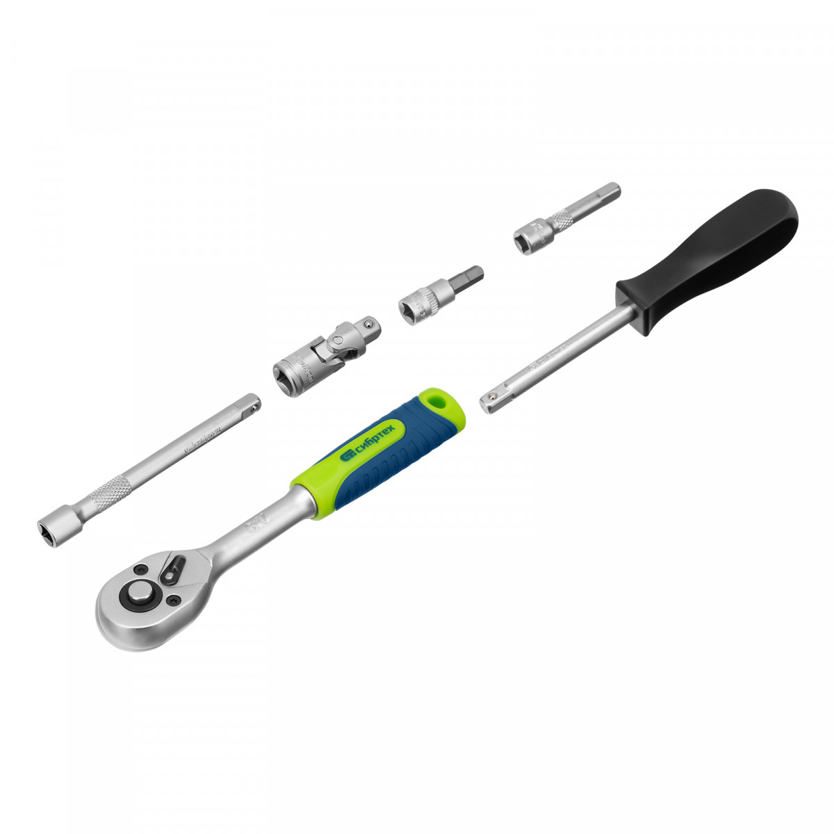 • Прочная фиксация — шариковый замок на трещотках, воротках, шарнирах и удлинителях надежно удерживает головки.