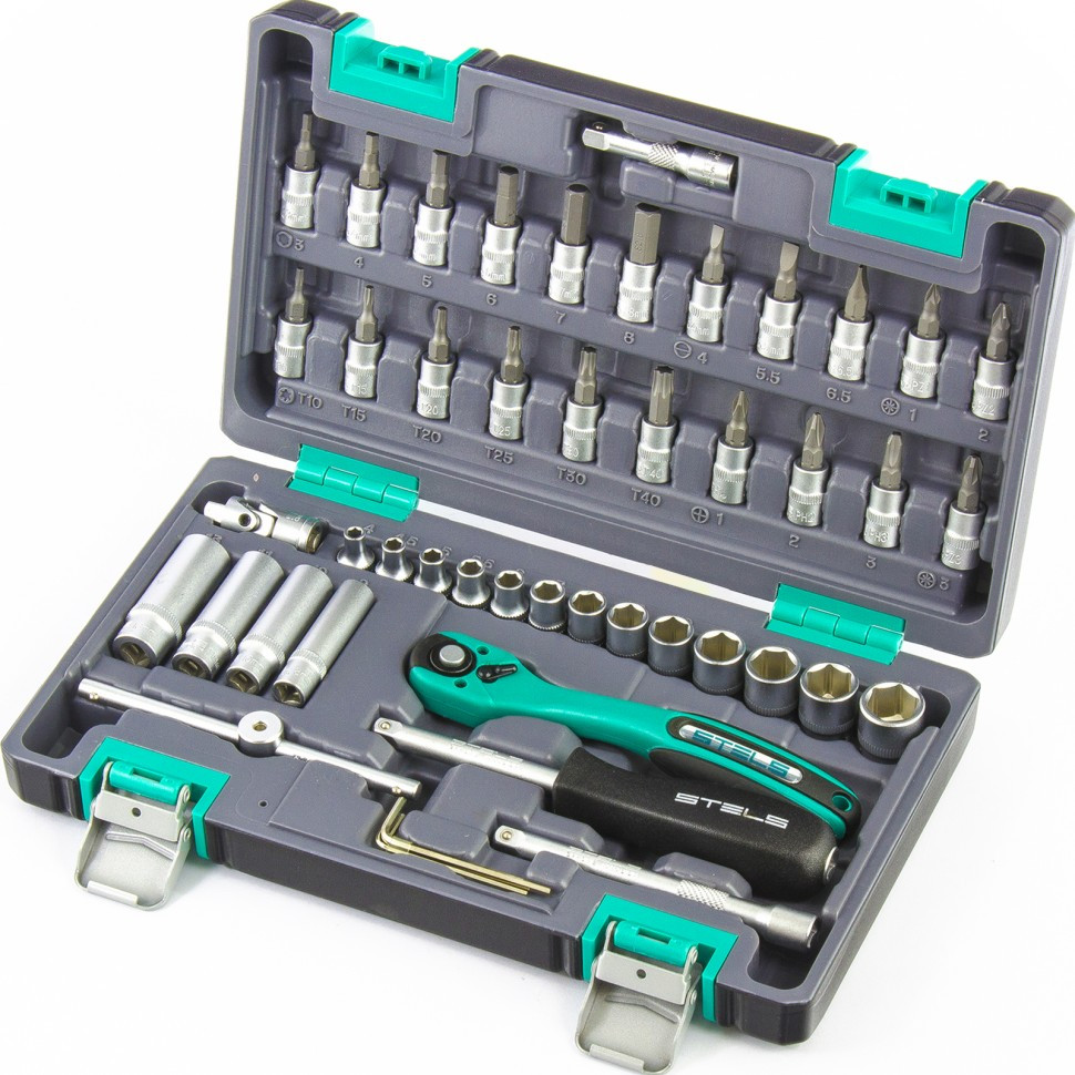Набор инструмента 1/4", CrV, S2, усиленный кейс, 47шт STELS 14099 подходит для автолюбителей и мастеров-профессионалов в области ремонта и обслуживания автомобилей и прочей техники. Все компоненты выполнены из прочных, износостойких материалов и упакованы в специальный кейс на металлических замках и с отдельными ячейками для каждого инструмента.
