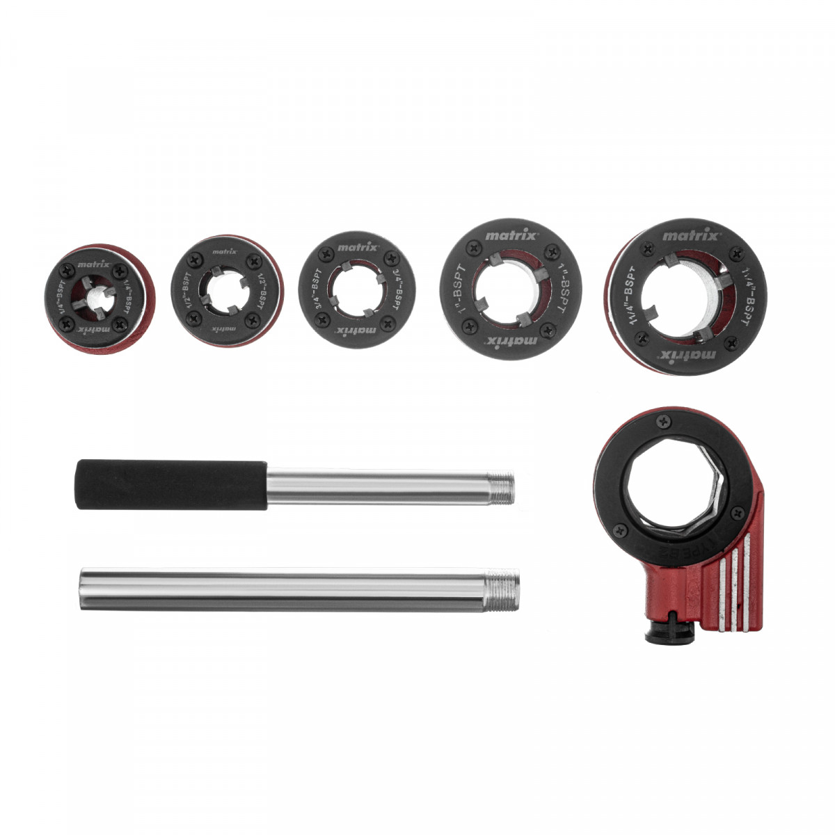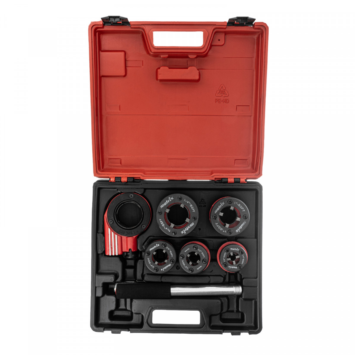 Набор клуппов 1/4-1/2-3/4-1-1.25"+ плашкодержатель с трещоткой, 8 предметов Matrix