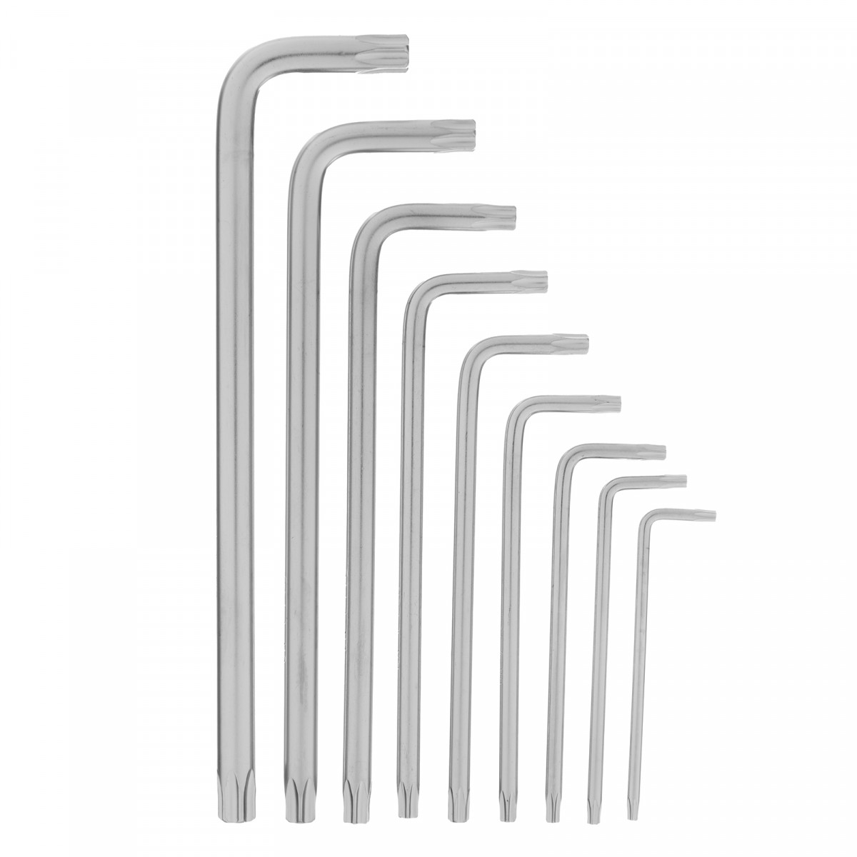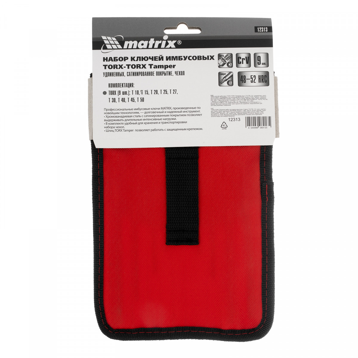 Набор Matrix 12313 в чехле включает 9 удлиненных сатинированных имбусовых ключей размером Т10-Т50, из стали CrV, и используется для монтажа и демонтажа крепежных элементов с профилем TORX-TORX Tampered. Набор пригодится для домашнего применения и профессиональных работ по ремонту бытовой и электронной техники. Ключи Г-образной формы удобны для работы с большим усилием и в труднодоступных местах.
