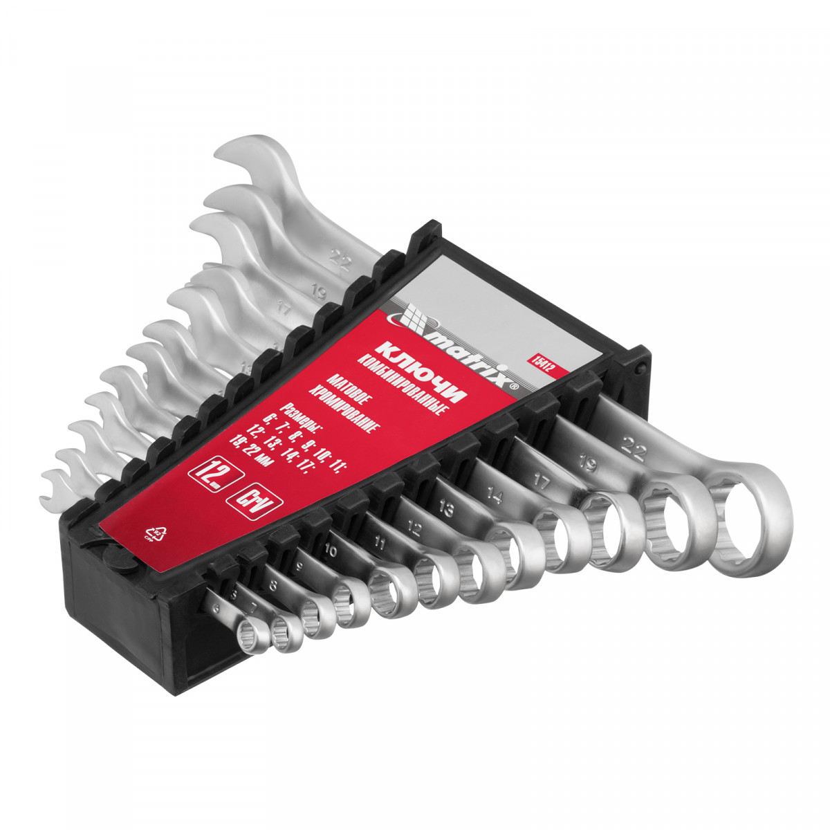 Набор ключей комбинированных, 6-22 мм, 12 шт, CrV, матовый хром Matrix