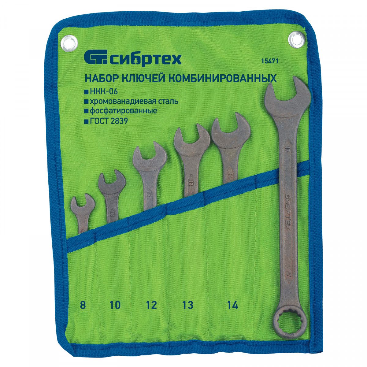 Набор ключей комбинированных, 8 - 17 мм, 6 шт., CrV, фосфатированные Сибртех
