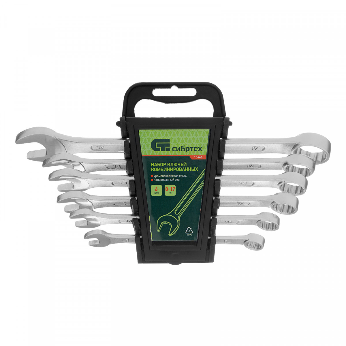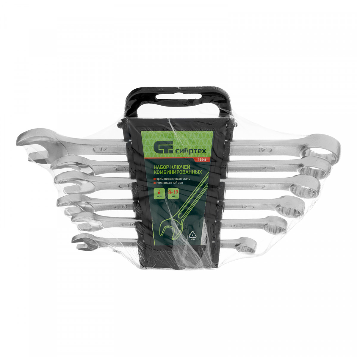 Набор ключей комбинированных, 8-17 мм, CrV, 6 шт Сибртех