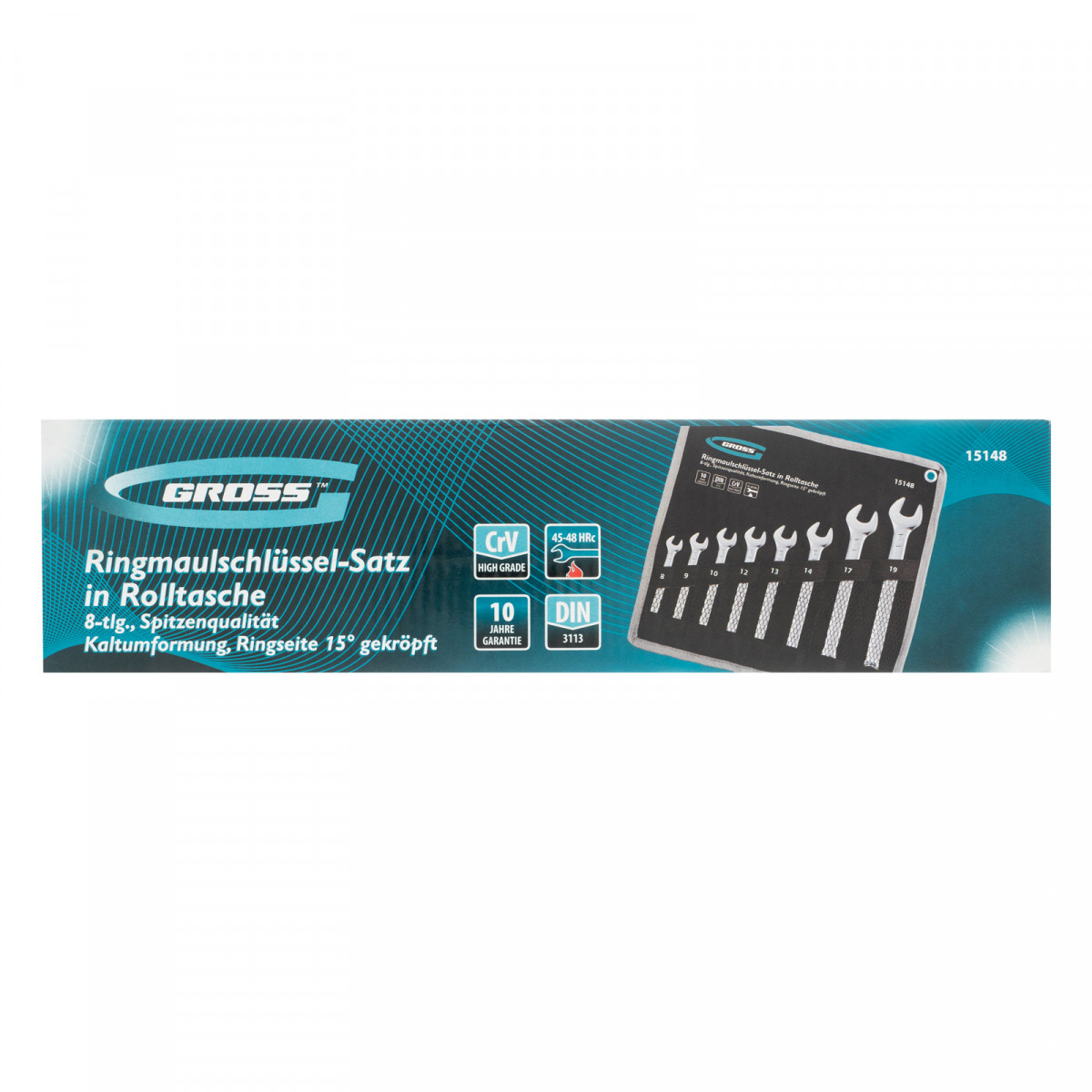 Набор ключей комбинированных 8-19 мм, 8 шт, CrV, холодный штамп Gross