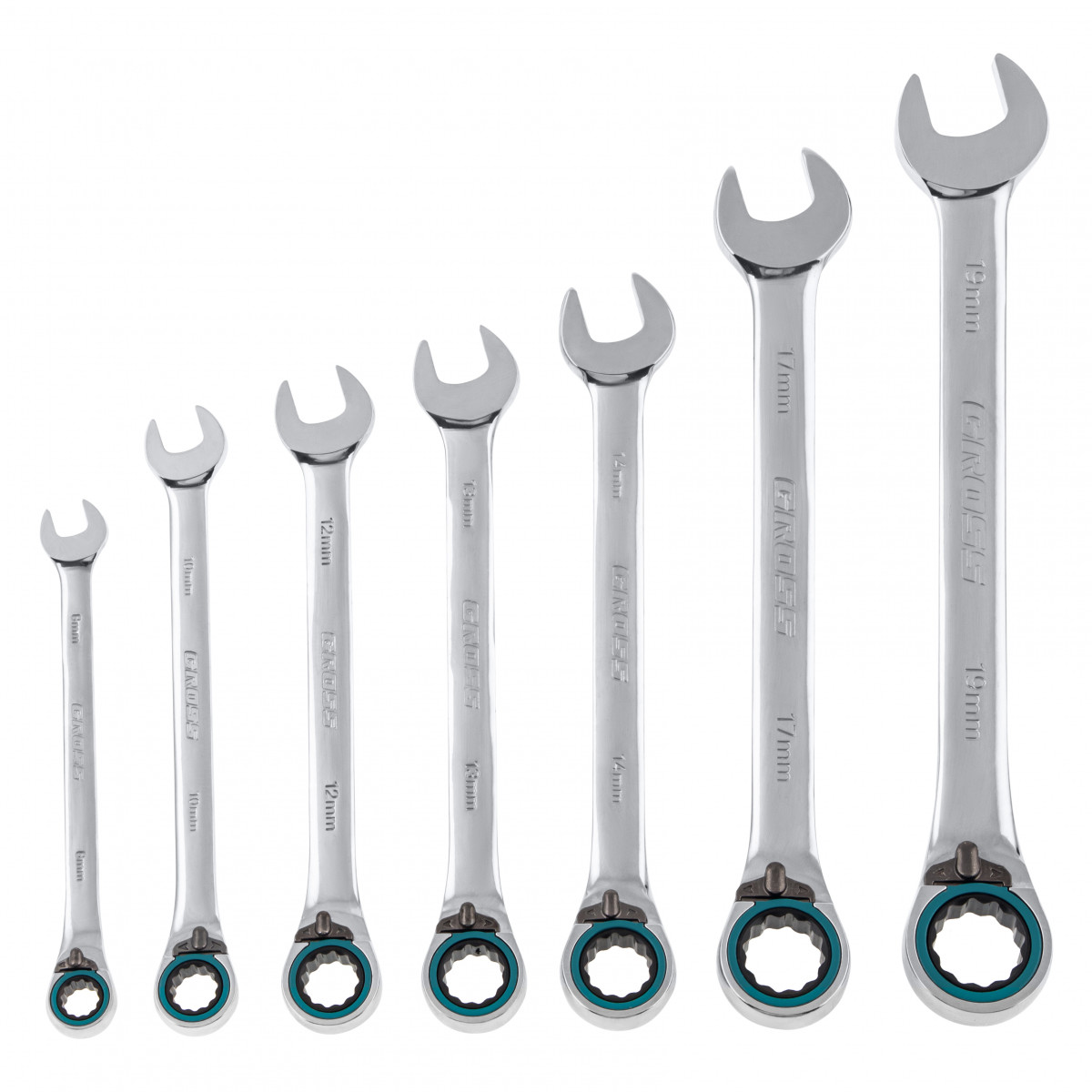 Набор ключей комбинированных с трещоткой, 8-19 мм, 7 шт, реверсивные, CrV Gross