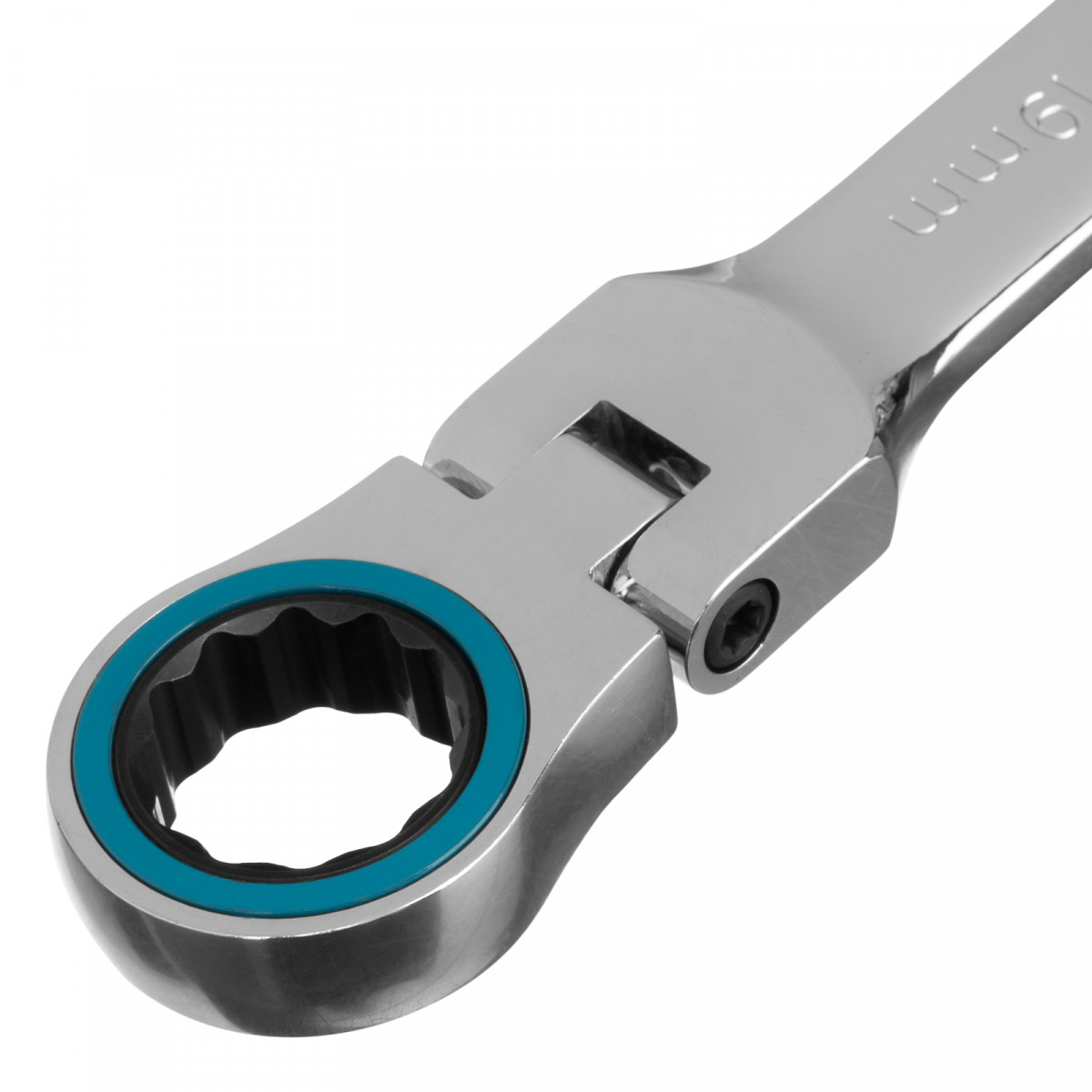 Набор шарнирных комбинированных ключей с трещоткой Gross 14891 включает в себя 7 предметов из стали CrV для откручивания и закручивания резьбовых соединений с диаметром головки 8-19 мм. Благодаря наличию рожкового зева ключи подходят для любых типов крепежей. 12-гранная кольцевая головка обеспечивает надежный контакт с поверхностью болта или гайки, облегчая работу и уменьшая риск деформации граней крепежа. Набор используется для обслуживания и ремонта автомобилей, пригодится также и в быту.