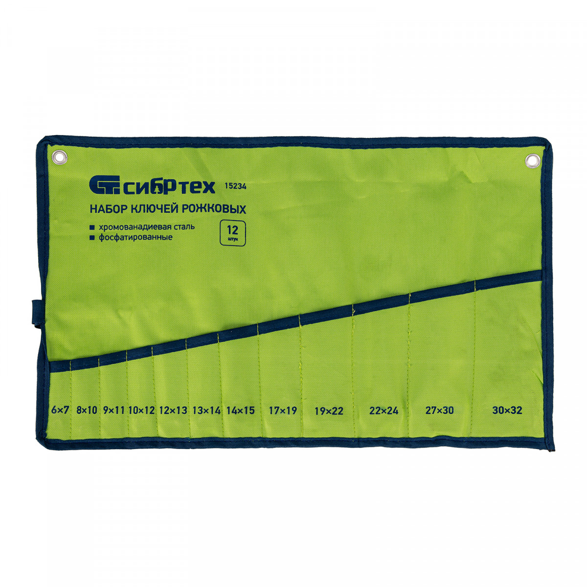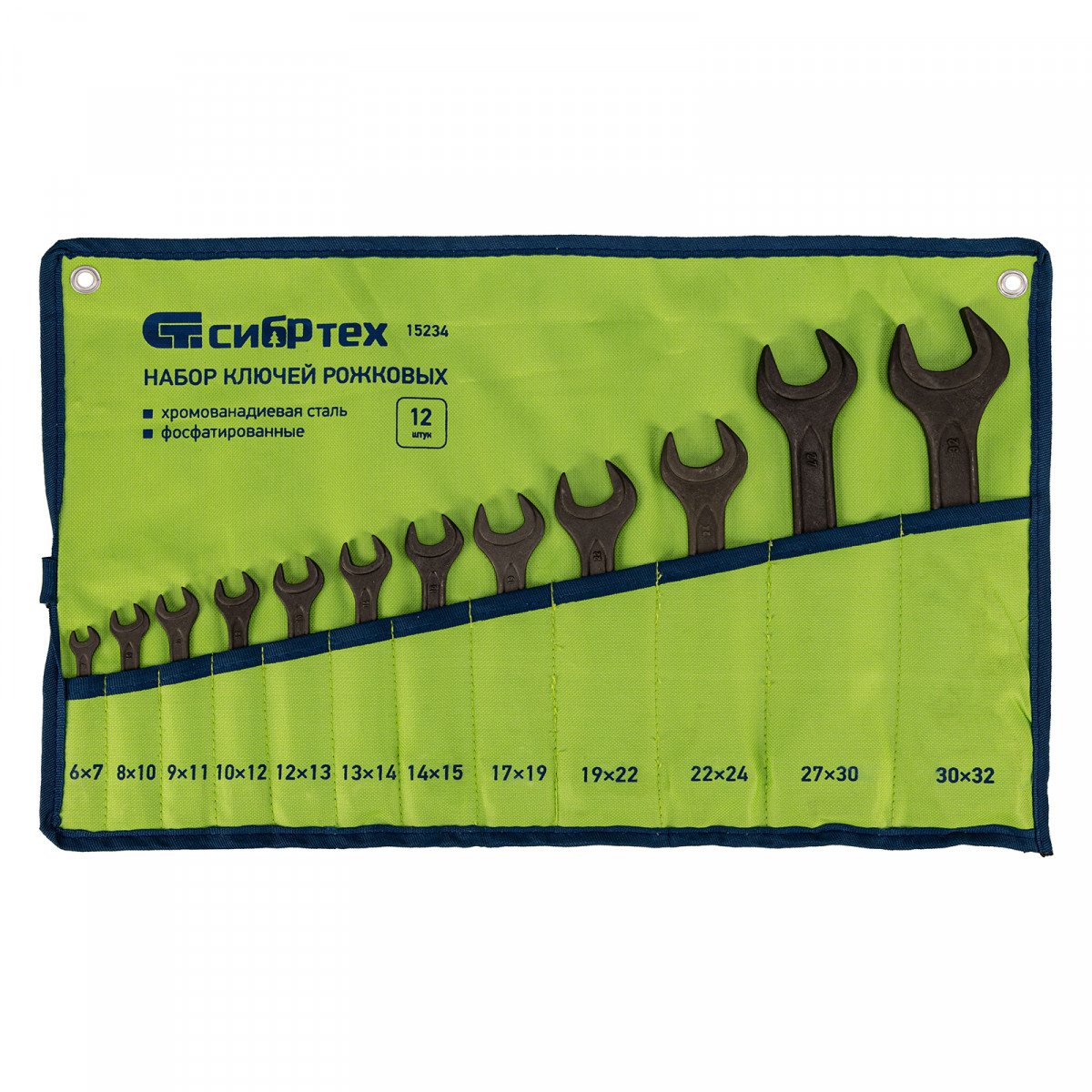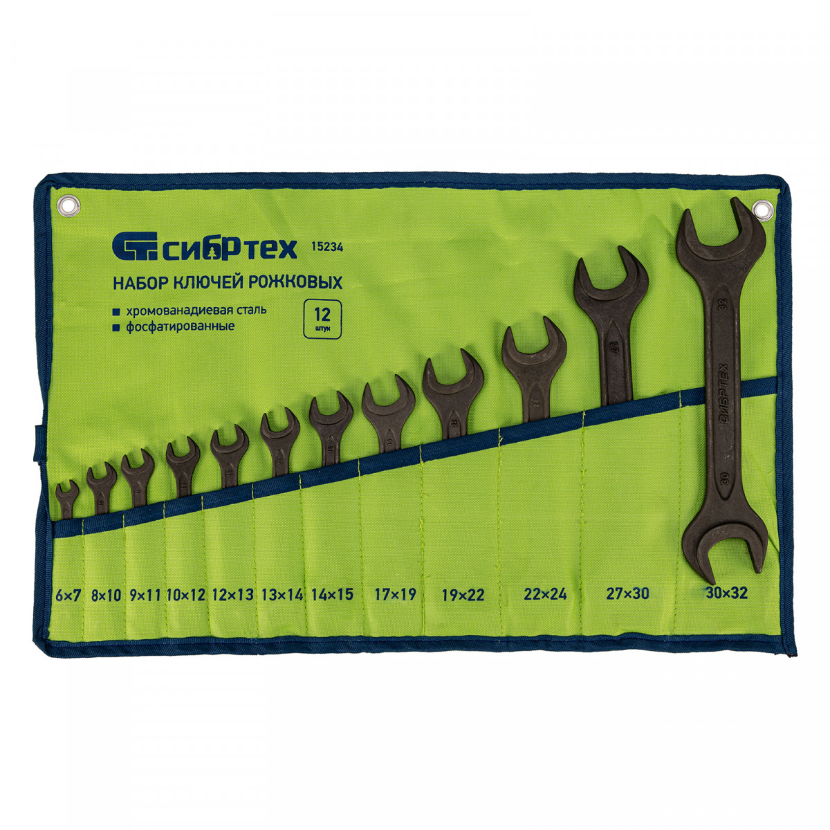 Набор ключей рожковых, 6 - 32 мм, 12 шт., CrV, фосфатированные Сибртех
