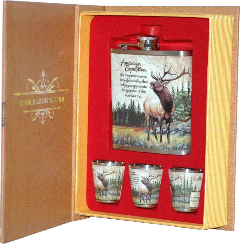 Набор Лось/Олень: фляжка 210мл + 3 стопки А04