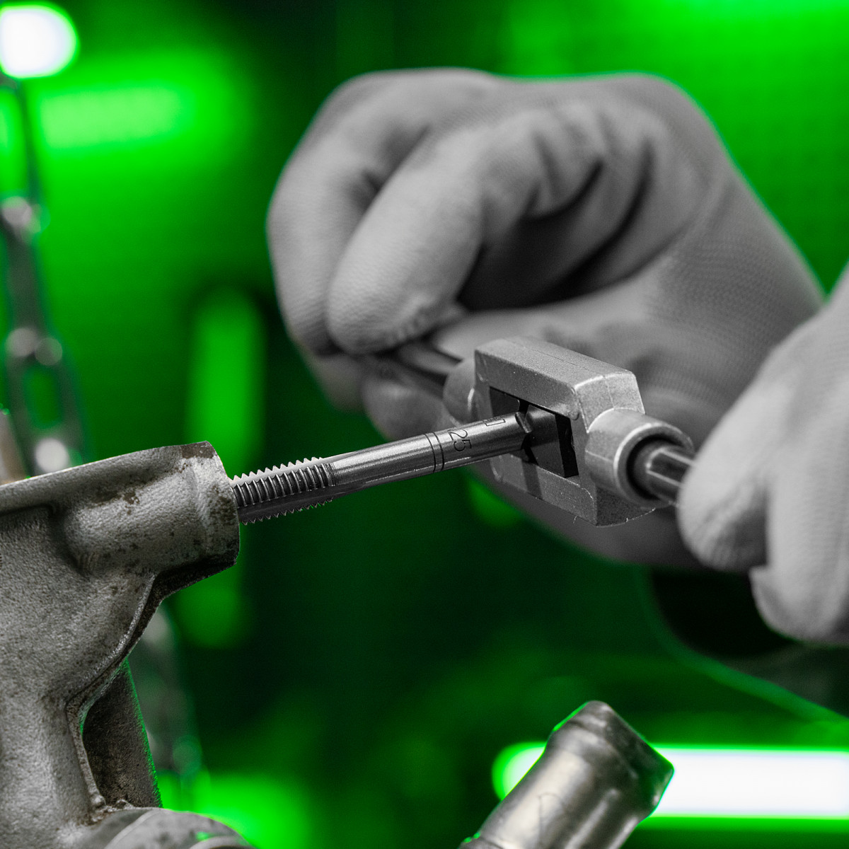 • Прочность и долговечность — метчики изготовлены из высокоуглеродистой легированной стали 9ХС, устойчивой к повышенным нагрузкам.
