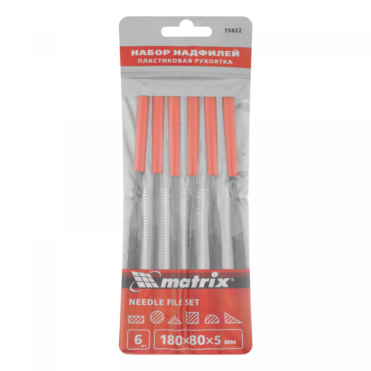 Набор надфилей, 180 х 5 мм, 6 шт, пластиковые рукоятки Matrix