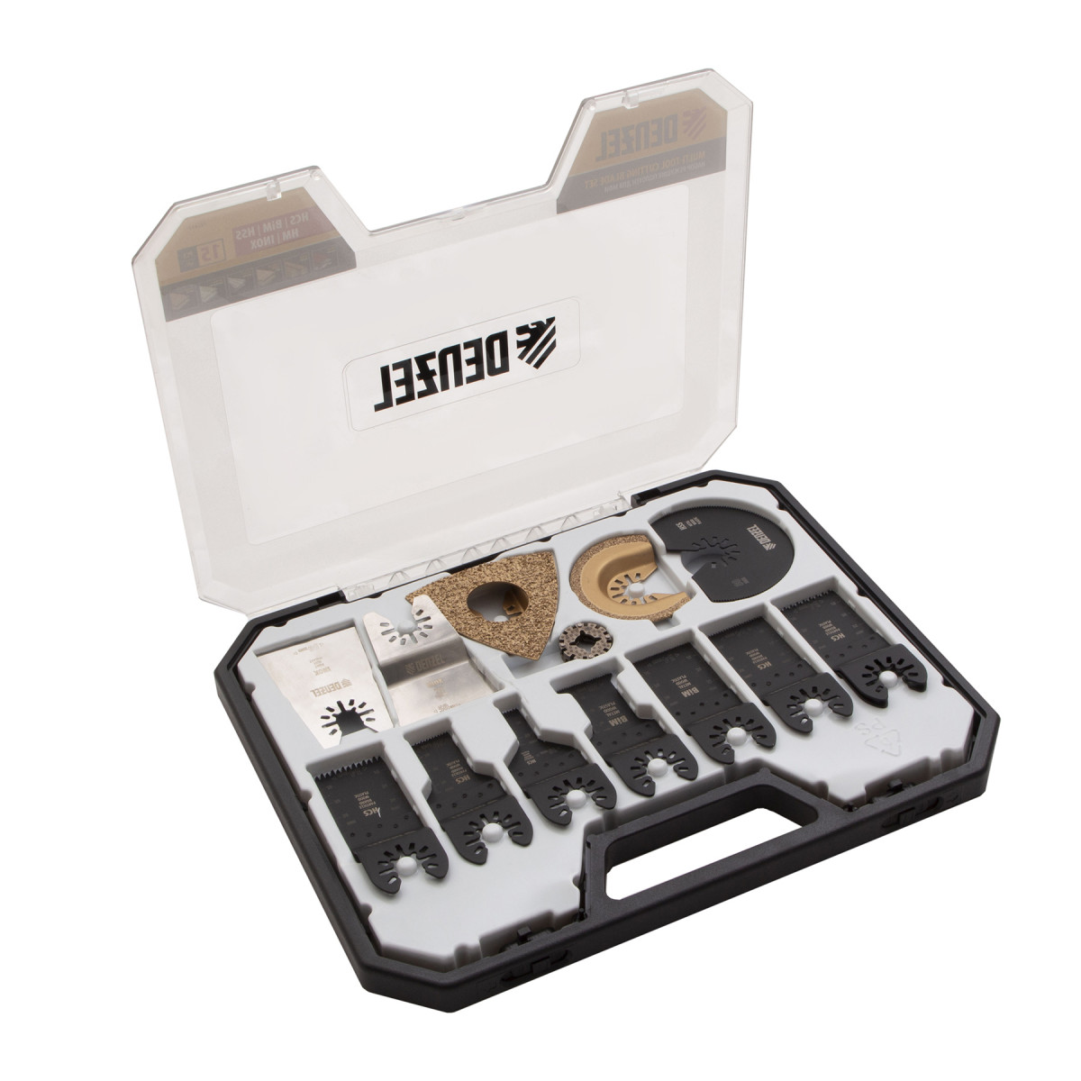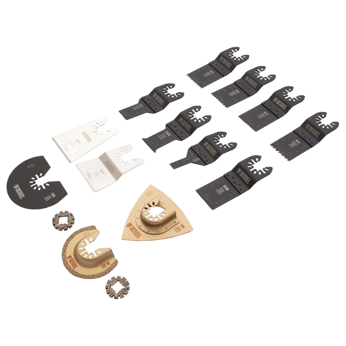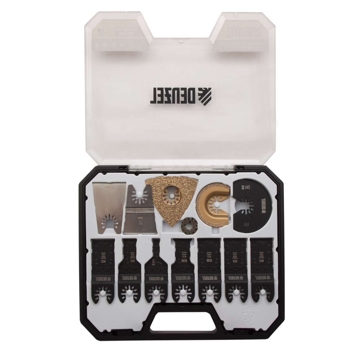 Универсальный набор Denzel 782415 включает в себя 15 насадок для МФИ, поэтому станет незаменимым помощником для частных мастеров и профессионалов. Поможет выполнить широкий спектр работ по деревянным, металлическим поверхностям, камню, плитке и пластику: шлифовку, рез, удаление герметика, выборку пазов и многое другое.