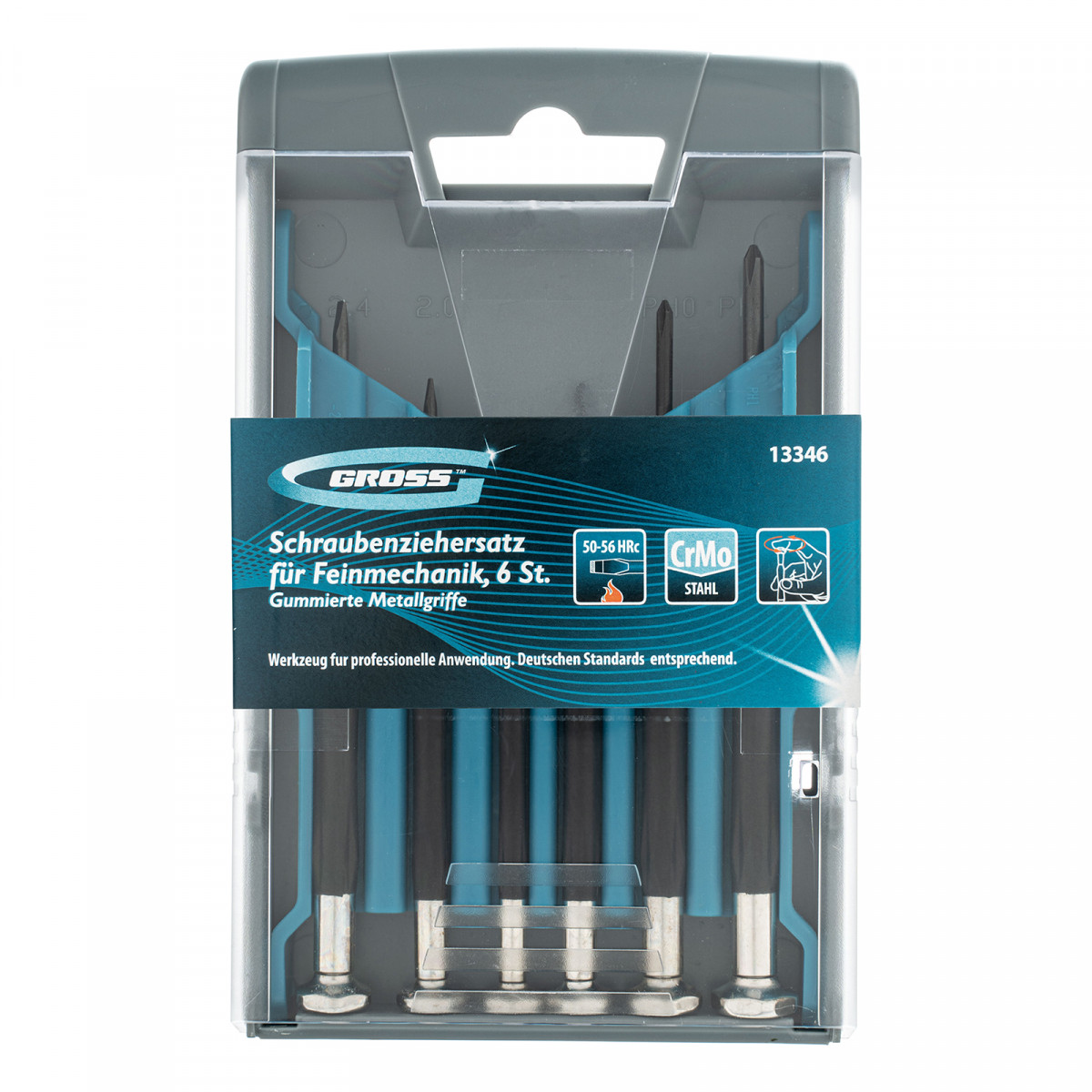 Набор отверток для точной механики, CrMo, металлические обрезиненные рукоятки, 6 шт, бокс трансформер Gross