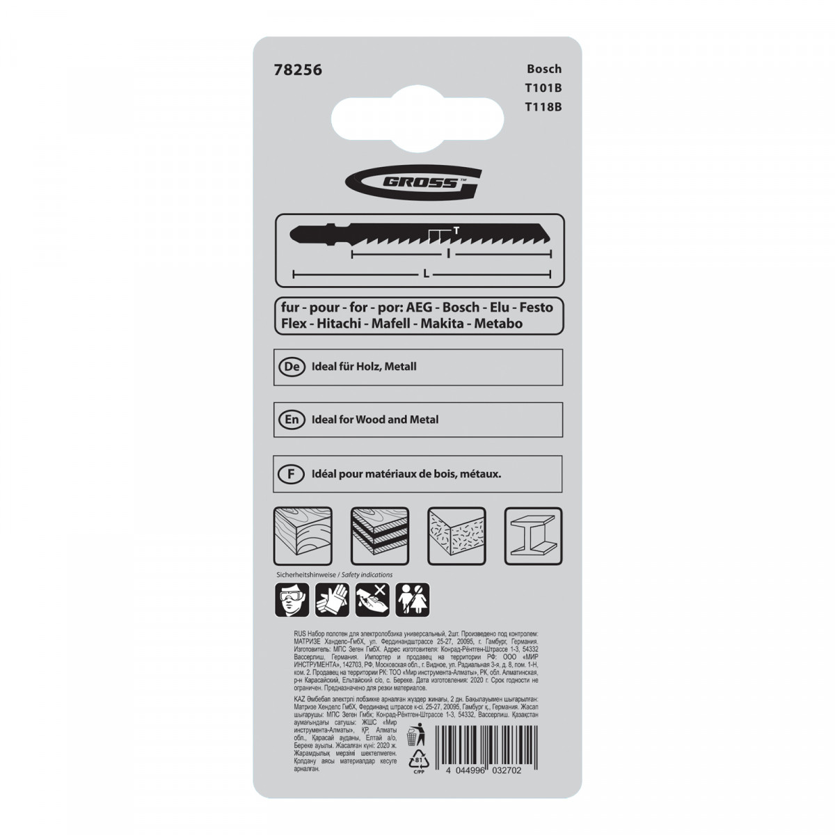 Универсальный набор полотен Gross 78256, 2 шт. в упаковке, предназначен для установки на электролобзики. Позволяет производить распил металлов толщиной 3-6 мм, а также древесины толщиной 4-60 мм. Благодаря отшлифованной под конус боковой поверхности полотна оставляют аккуратную кромку в месте распила.