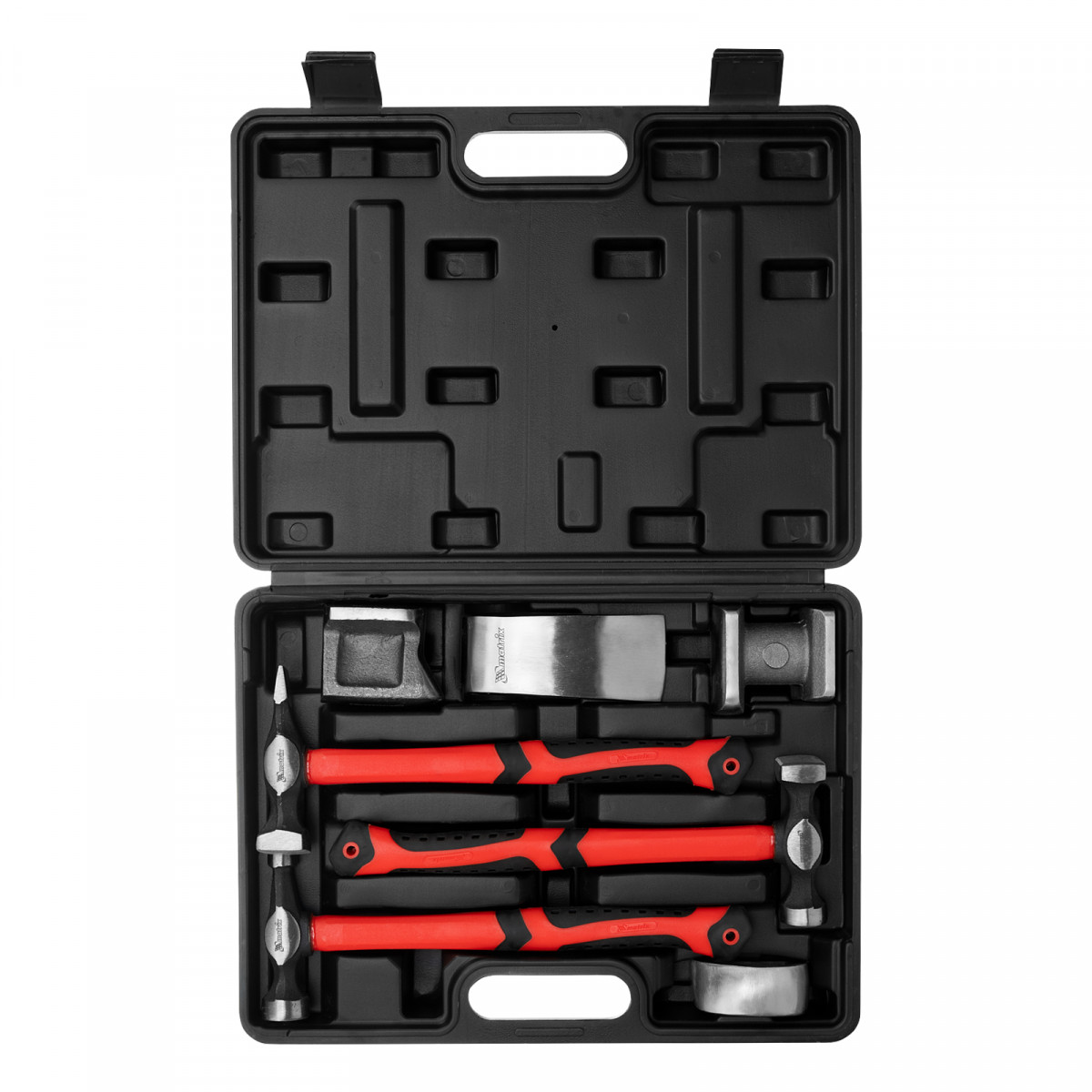 Набор рихтовочный, 3 молотка с фибергласовыми ручками, 4 наковальни, пластиковый бокс Matrix