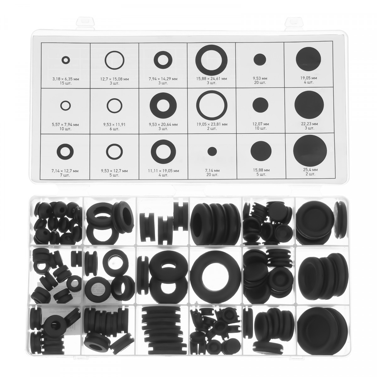Сальник 3,18х6,35 мм - 15 штСальник 5,57х7,94 мм - 10 штСальник 7,14х12,7 мм - 7 штСальник 12,7х15,08 мм - 3 штСальник 9,53х11,91 мм - 6 штСальник 9,53х12,7 мм - 5 штСальник 7,94х14,29 - 3 штСальник 9,53 х 20,64 мм - 3 штСальник 11,11х19,05 мм - 4 штСальник 15,88х24,61 мм - 3 штСальник 19,05х23,81 мм - 2 штСальник 7,14 мм - 20 штСальник 9,53 мм - 20 штСальник 12,07 мм - 10 штСальник 15,88 мм - 5 штСальник 19,05 мм - 4 штСальник 22,23 мм - 3 штСальник 25,4 мм - 2 шт