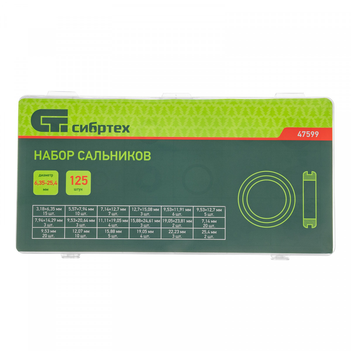 Набор сальников, D 6, 35-25.4 мм, 125 предметов Сибртех