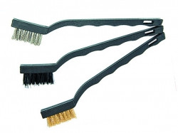 Набор металлических щеток имеет стальную щетину в пластмассовых корпусах и удобные пластмассовые ручки. Используется для грубой обработки металлических поверхностей.