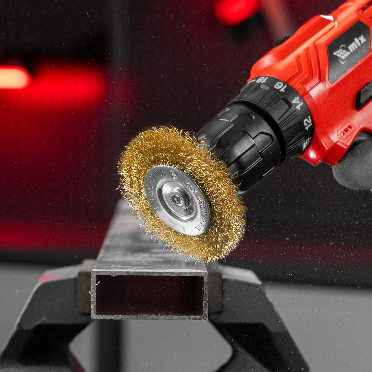Набор щеток со шпильками Matrix 74492 (две плоские диаметром 50-75 мм и три «чашки» диаметром 25-50-75 мм) включает насадки на дрель, предназначенные для щадящей обработки поверхностей различной площади. Рекомендованная скорость вращения — не более 4500 об/мин. Плоские щетки оптимальны для зачистки труднодоступных мест, углов и изгибов, а «чашки» — для обработки плоскостей. С помощью насадок можно счистить с поверхностей ржавчину, загрязнения и старые лакокрасочные покрытия.