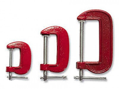 Литые рамы струбцин покрыты цветным лаком. Оцинкованный винт струбцин со специальным зажимом позволяет надежно фиксировать предметы.
