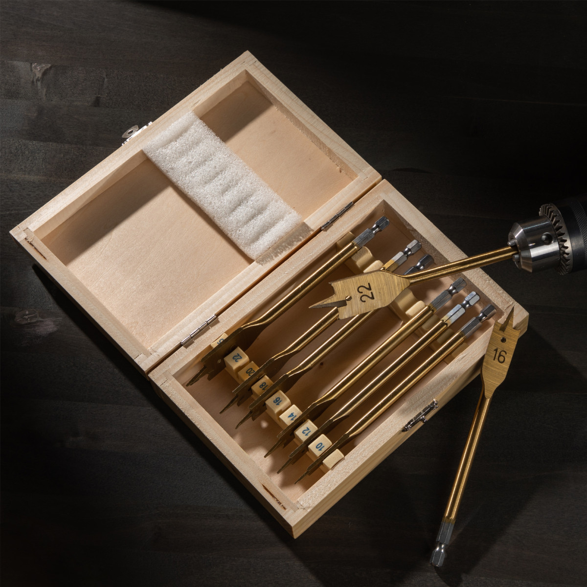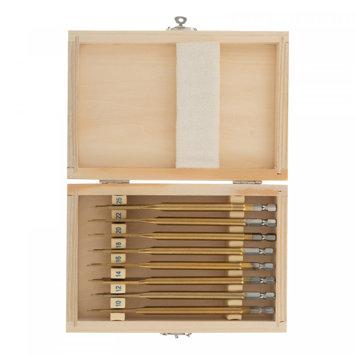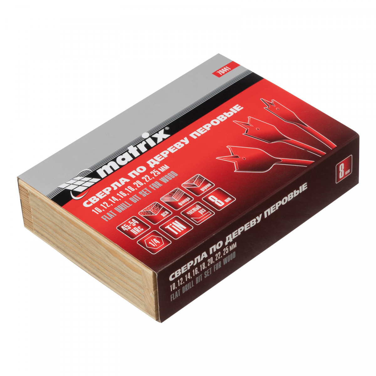 Набор сверл перовых по дереву, 10-12-14-16-18-20-22-25 мм, 8 шт, деревянный кейс Matrix