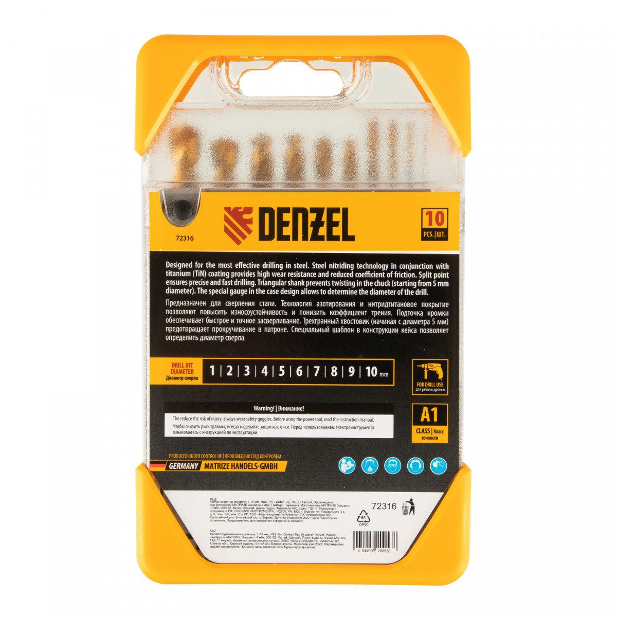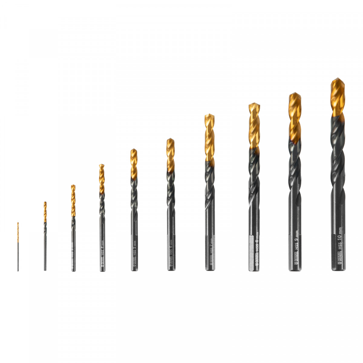 Набор сверл по металлу, 1-10 мм, HSS-Tin, Golden Tip, 10 шт Denzel