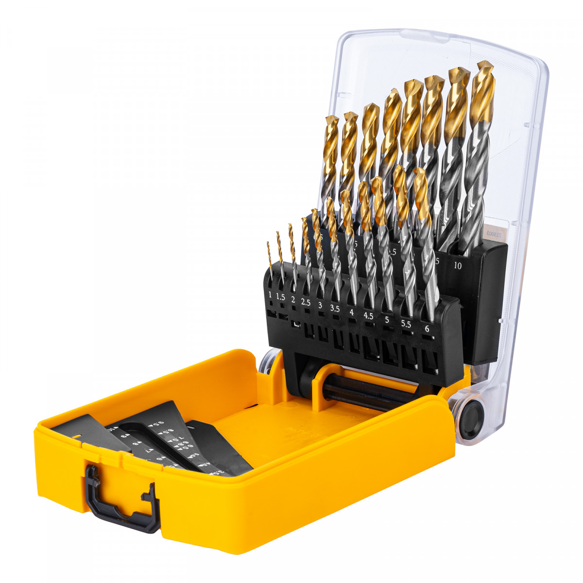 Набор сверл по металлу, 1-10 мм, Р6М5-TiN, Golden Tip, 19 шт Denzel