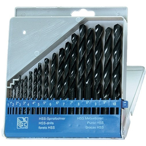 19 шт.: 1 мм; 1.5 мм; 2 мм; 2.5 мм; 3 мм; 3.5 мм; 4 мм; 4.5 мм; 5 мм; 5.5 мм; 6 мм; 6.5 мм; 7 мм; 7.5 мм; 8 мм; 8.5 мм; 9 мм; 9.5 мм; 10 мм;