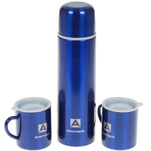 Набор: термос бытовой вакуум (д/напитков) 1000 мл+2 кружки 300 мл АРКТИКА , арт.102-1000S (синий)