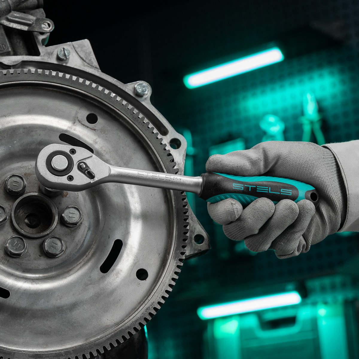 Трещотка с 72 зубьями обеспечивает плавное и мягкое вращение крепежа.