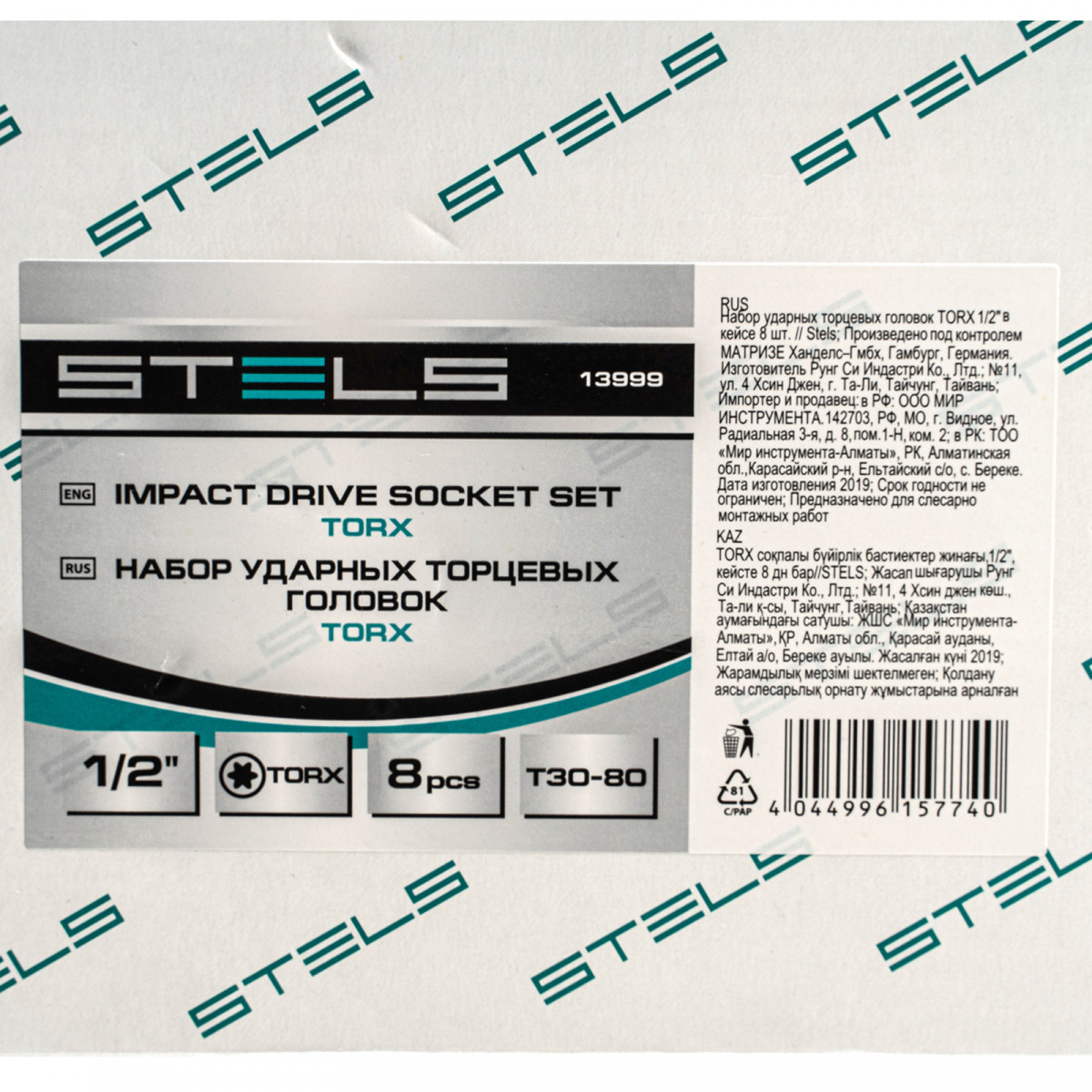 Набор ударных торцевых головок Torx 1/2", в кейсе, 8 шт. Stels
