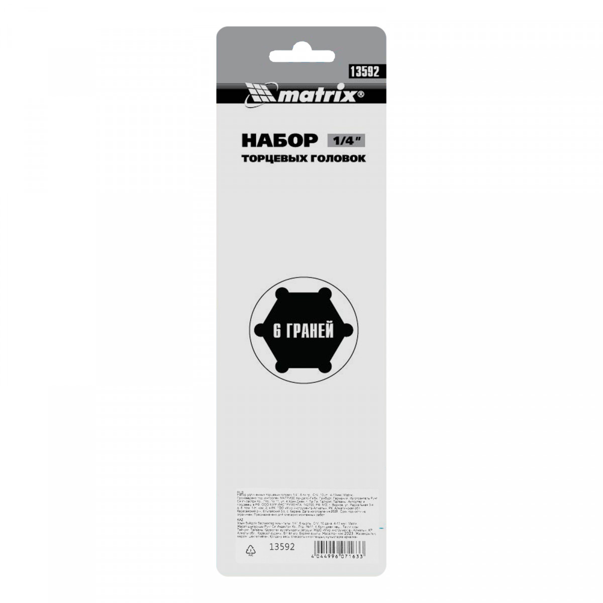 Набор удлиненных торцевых головок 1/4", 6 гранные, CrV, 4-13мм, 10 штук Matrix