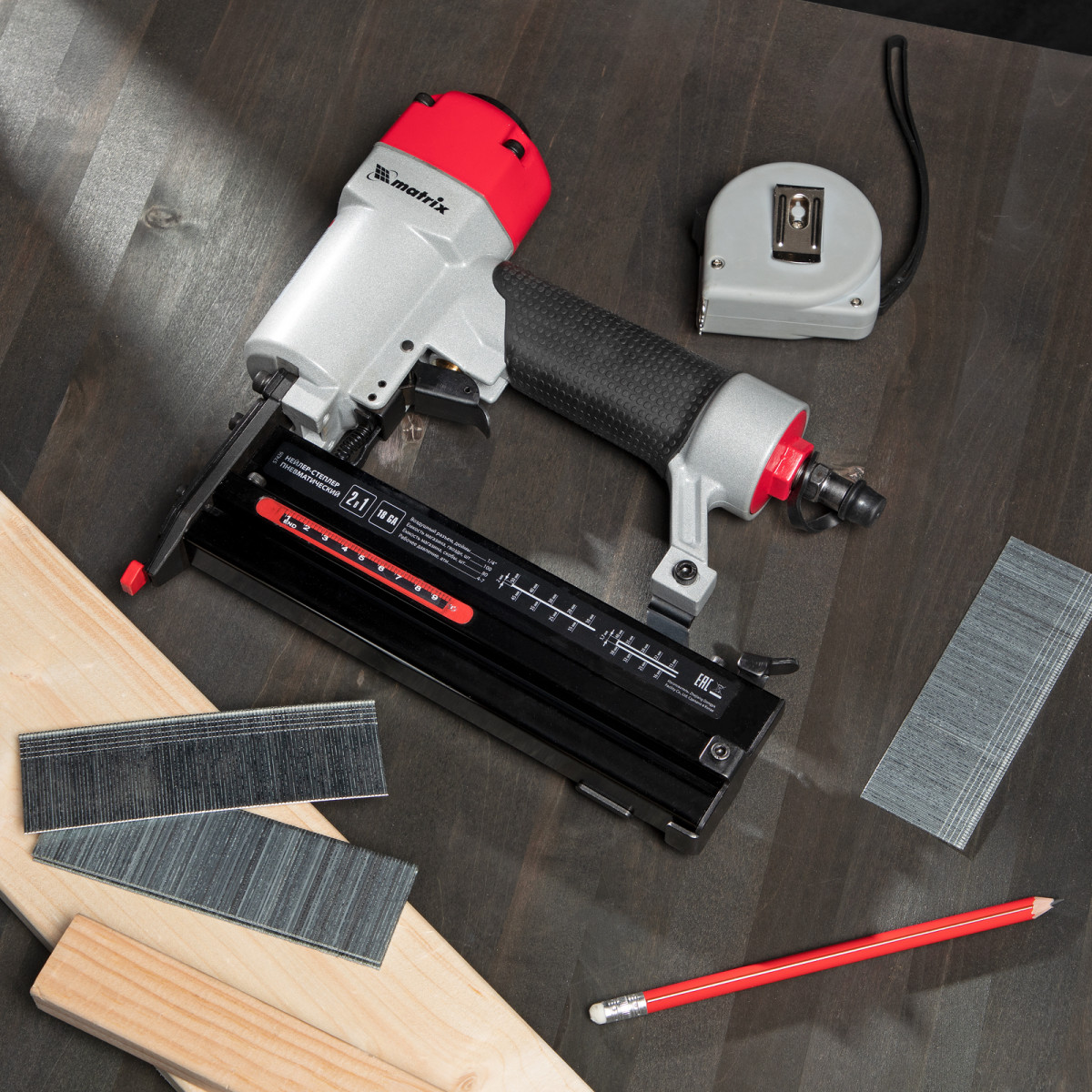 Нейлер-степлер пневматический 2 в 1, гвозди 18GA длина 10-50 мм, скобы 18GA длина 25-40 мм Matrix