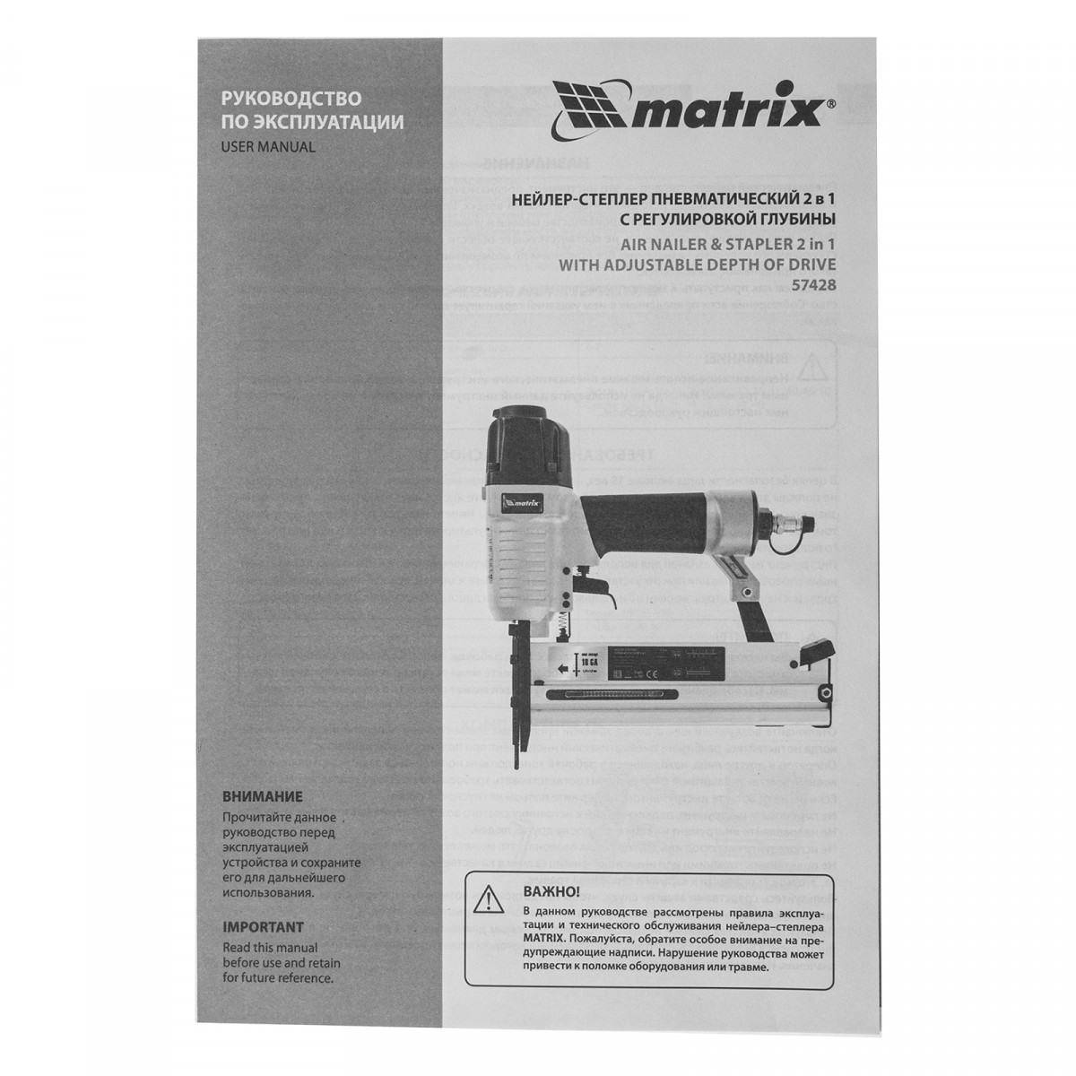 Нейлер-степлер пневматический 2 в 1, с регулировкой глубины забивания, гвозди 18GA, скобы 18GA Matrix