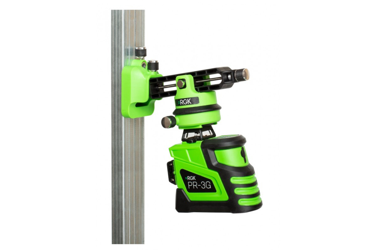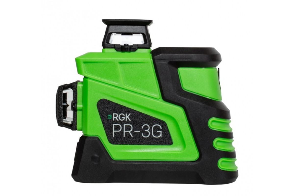 Лазерный построитель плоскостей RGK PR-3G проецирует горизонтальную и 2 вертикальные линии с углом развертки 360°. Луч зеленого цвета обеспечивает хорошую видимость при ярком солнечном свете и на темных поверхностях.