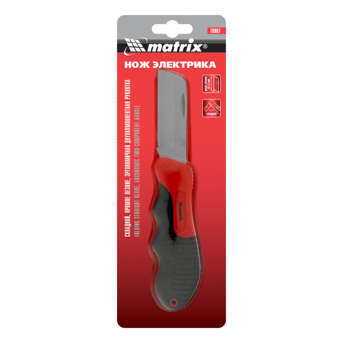 Нож электрика, складной, прямое лезвие, эргономичная двухкомпонентная рукоятка Matrix