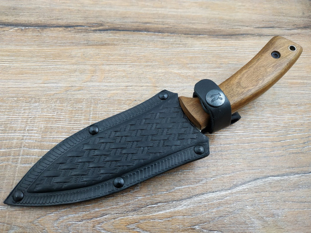 Нож является одним из самых важных инструментов как в походе, так и на охоте или рыбалке. С его помощью возможно не только моментально вскрыть консервную банку, но и разрезать веревку или прорубить тропинку в зарослях. Помимо этого, ножи могут быть использованы в ряде других сфер, например спорт или кулинария. Также не каждый нож требует наличия лицензии. Туристические ножи, например, не относятся к холодному оружию, из-за чего их может приобрести любой желающий. Производственное предприятие ООО ПП «Кизляр» занимается выпуском высококачественных ножей начиная с конца 90х годов. Огромный ассортимент компании, который создается по современным стандартам мастерами своего дела, порадует своим разнообразием. Весь товар этого производителя проходит полевые испытания перед тем как оказаться на складах и полках магазинов. Представленная модель угловатого ножа с особым художественным оформлением "Акула-2" отлично справится со всеми своими задачами, которые могут пасть на неё во время обычного использования. Лезвие изготовлено из AUS-8. Рукоятка сделана из дерева ореха. Общая длина модели равна 260 мм. Длина клинка равна 135 мм, толщина 2,4 мм. Твердость находится на уровне 57-59 HRC. ОБРАЩАЕМ ВАШЕ ВНИМАНИЕ: Данная модель не является холодным оружием.