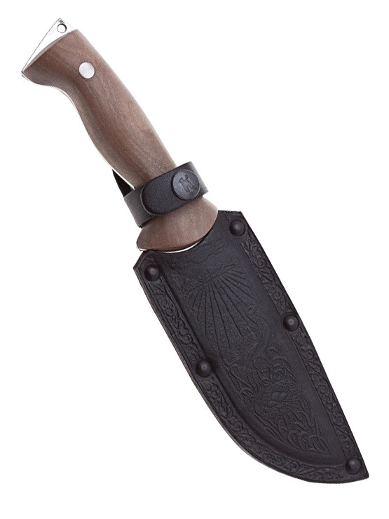 Нож туристический Дрофа - это прекрасный и недорогой представитель туристической линейки от известнейшей компании Кизляр. Он был разработан и изготовлен для суровых испытаний и возможных больших нагрузок. Клинок изготовлен из традиционно славящейся твердостью стали 65Х13, широкий клинок особой формы позволяет использовать нож Дрофа Кизляр в самых различных ситуациях. Накладки из кавказского ореха с помощью заклепок надежно прикреплены к хвостовику, тем самым сохраняется удобство хвата при общей прочности конструкции - такой нож можно даже метать или прилагать высокие нагрузки к рукояти без боязни повредить рукоять или сломать клинок. Особый запоминающийся вид ножу придает удобная рукоять, художественная гравировка на клинке и поясные ножны из натуральной кожи, на которых также изображен рисунок с дрофой.