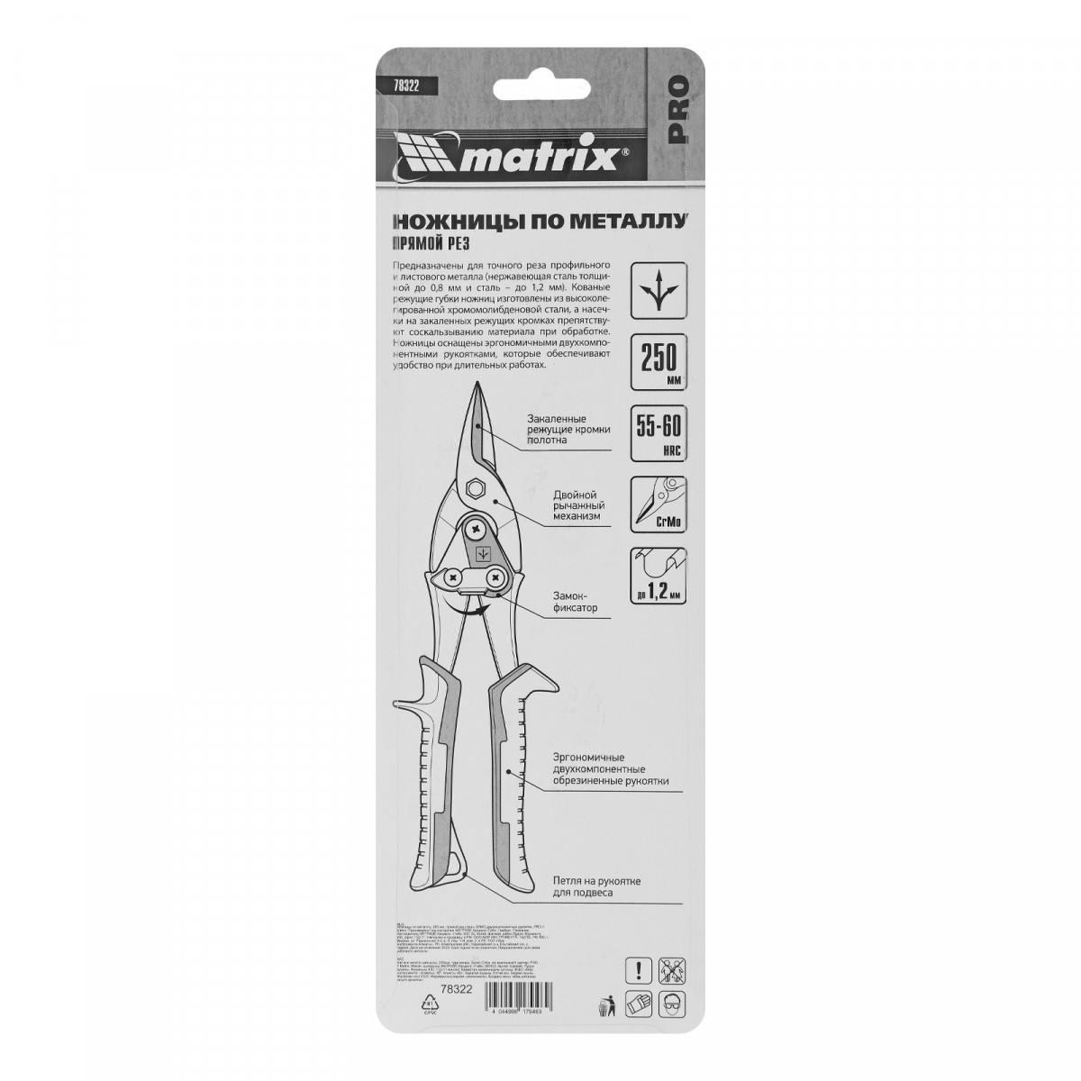 Ножницы по металлу, 250 мм, прямой рез, сталь CRMO, двухкомпонентные рукоятки, PRO Matrix