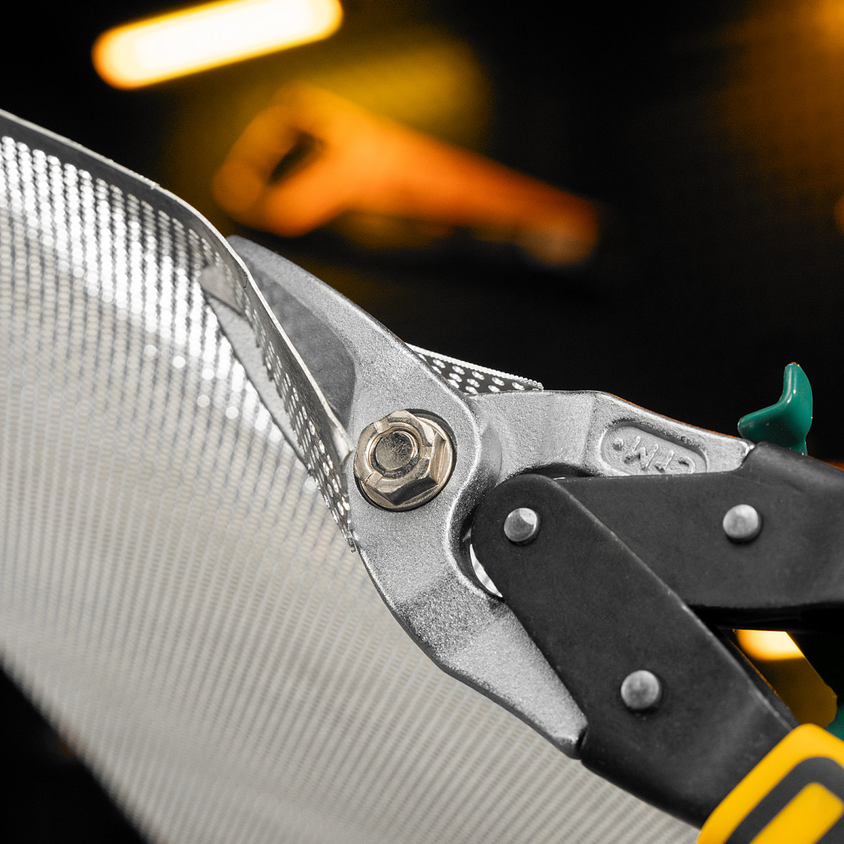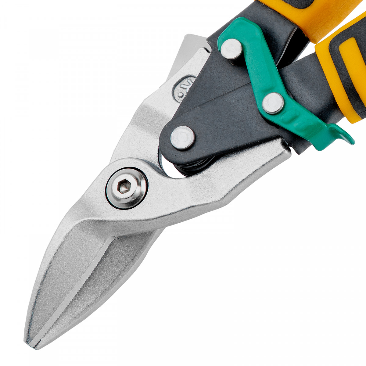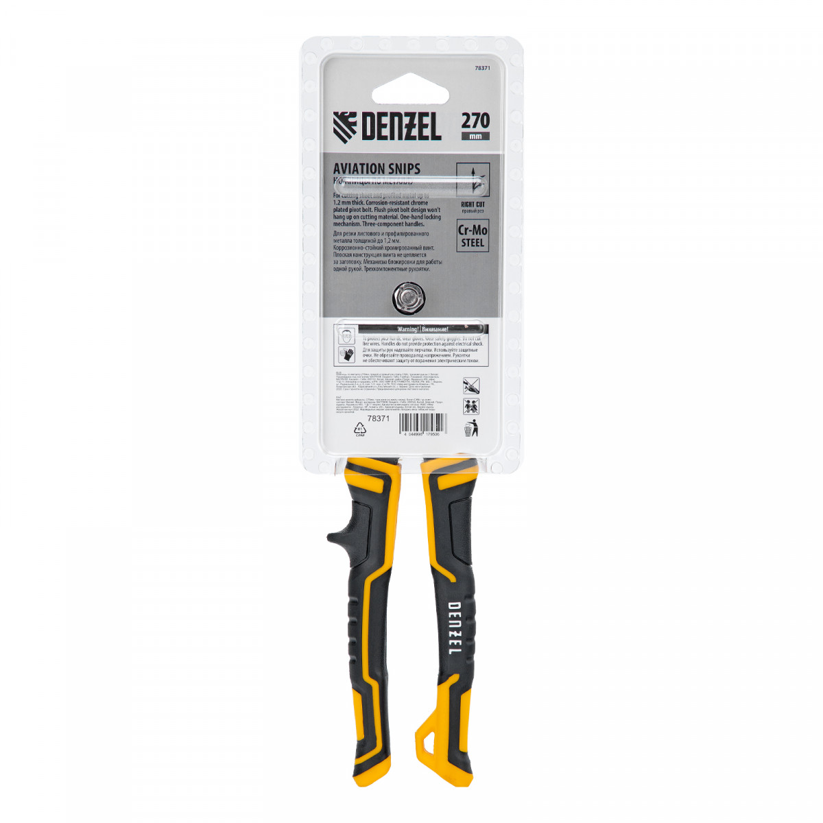 Ножницы по металлу, 270 мм, прямой и правый рез, сталь-СrMo, трехкомпонентные рукоятки Denzel