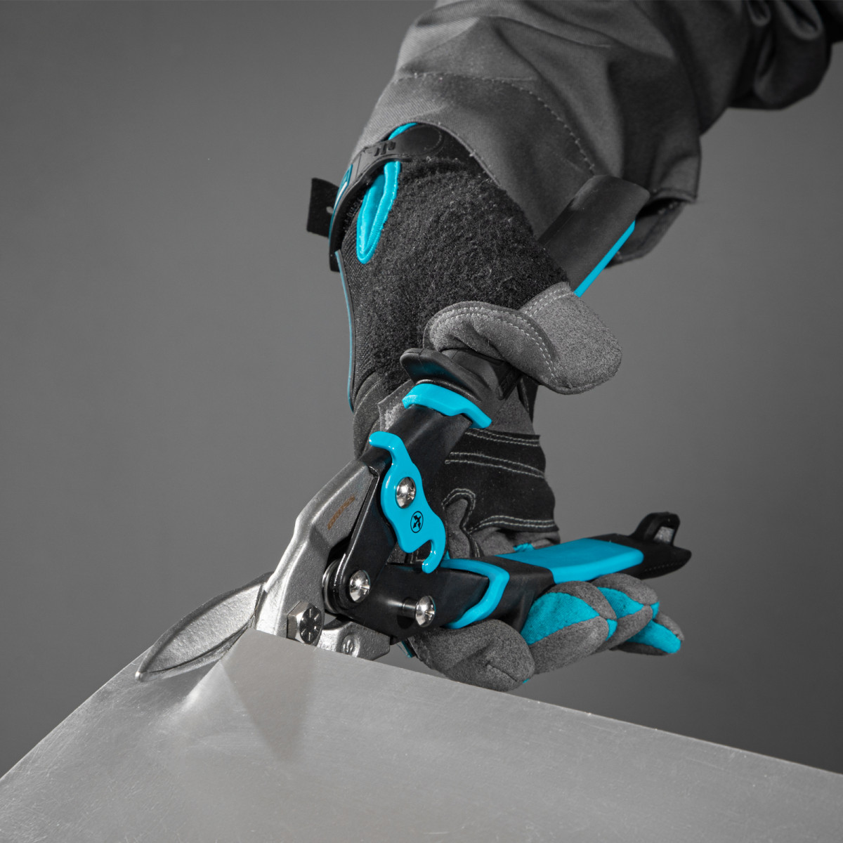 Ножницы по металлу Gross PIRANHA 78325 длиной 250 мм, из стали CrMo, с двухкомпонентными рукоятками, предназначены для точного прямого реза по листовым заготовкам. Двойной рычажный механизм уменьшает нагрузку на руку при резке толстого металла. Ножницы справляются с холоднокатаной сталью толщиной до 1,2 мм и с нержавеющей сталью толщиной до 0,7 мм. Инструмент используется для проведения профессиональных слесарных работ.
