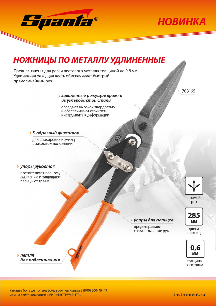 Ножницы по металлу, удлиненные, 290 мм, пряморежущие, обрезиненные рукоятки Sparta