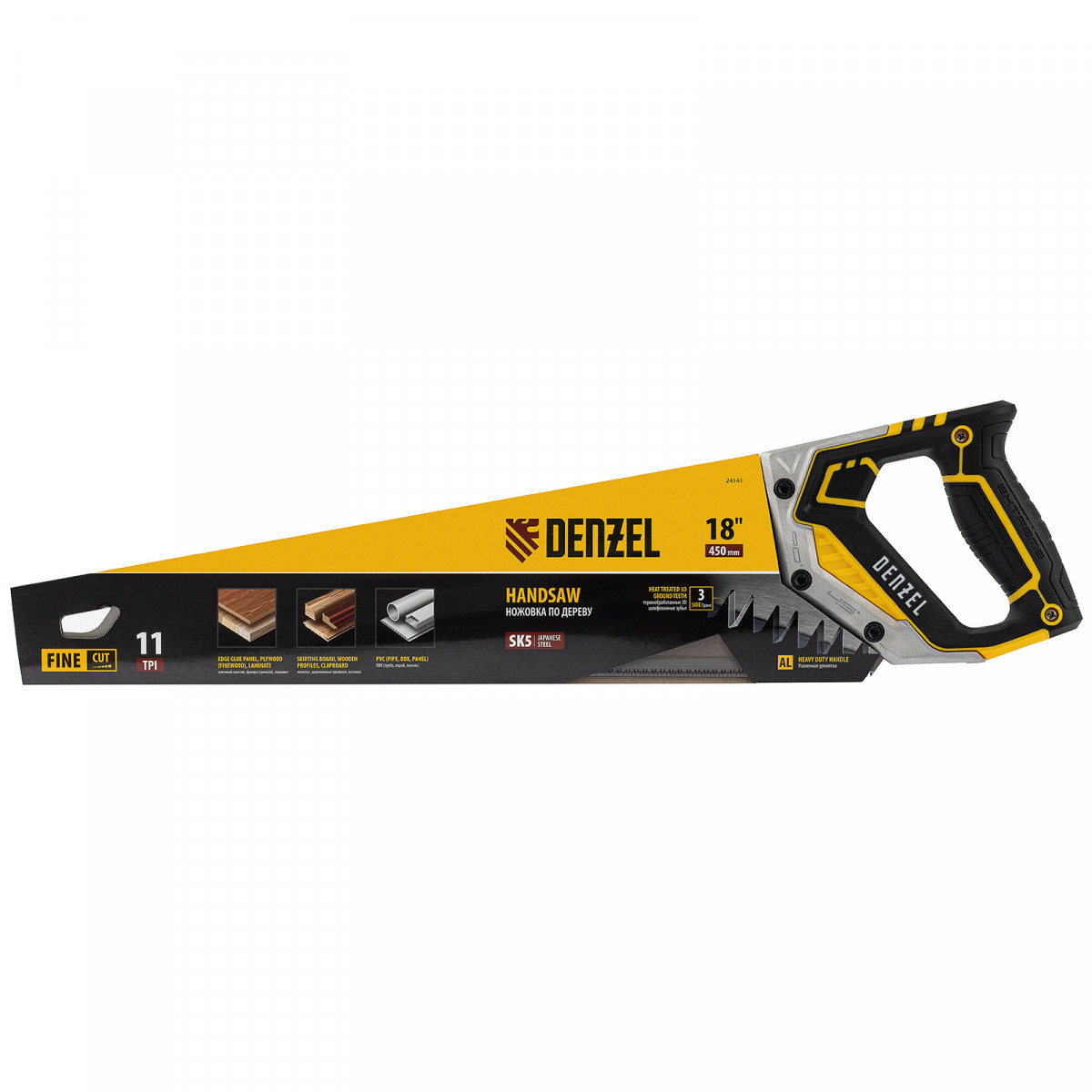 Ножовка по дереву, 450 мм, 11 TPI, зуб 3D, металлопластиковая рукоятка Denzel