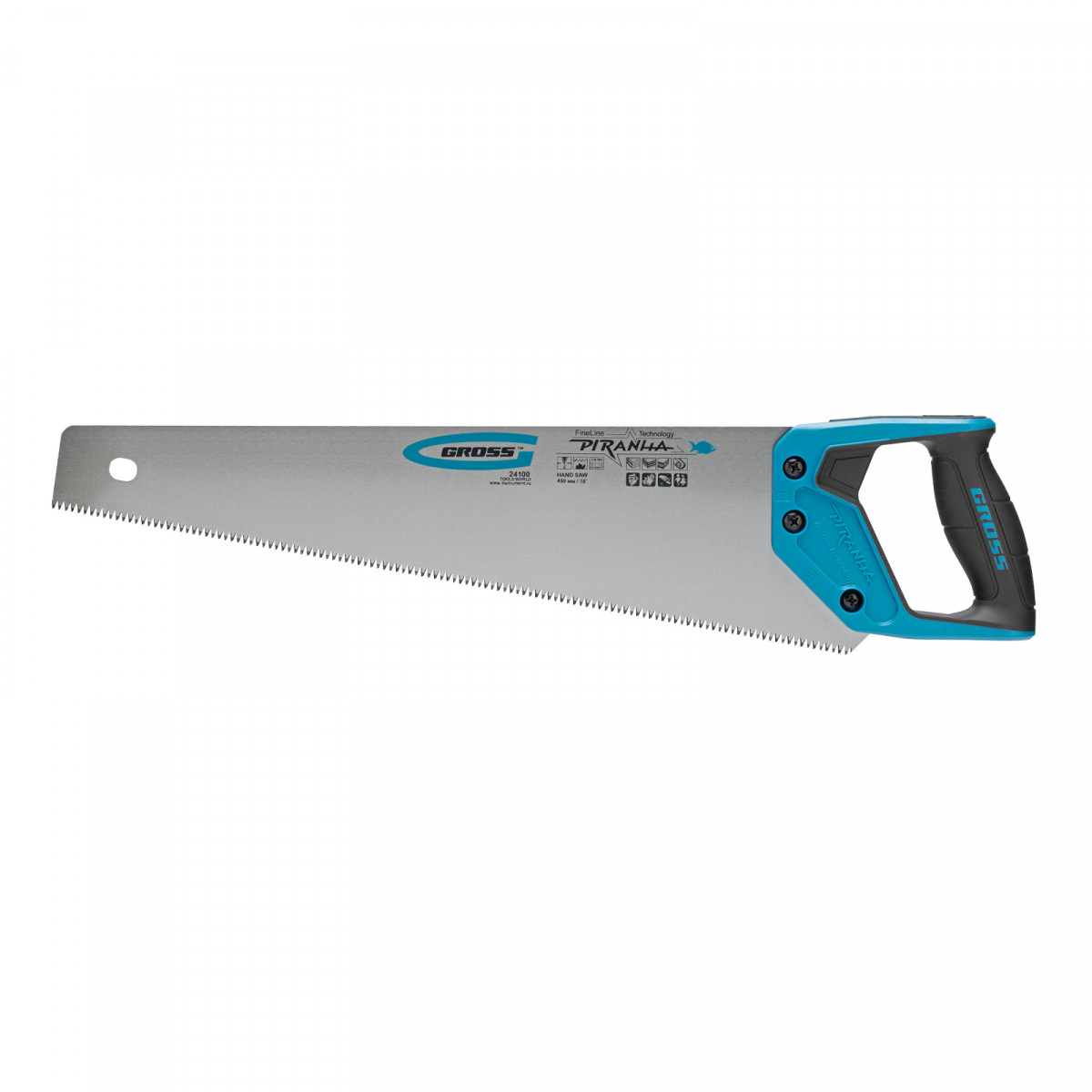 Ножовка по дереву "Piranha", 450 мм, 7-8 TPI, зуб-3D, каленый зуб, двухкомпонентная рукоятка Gross