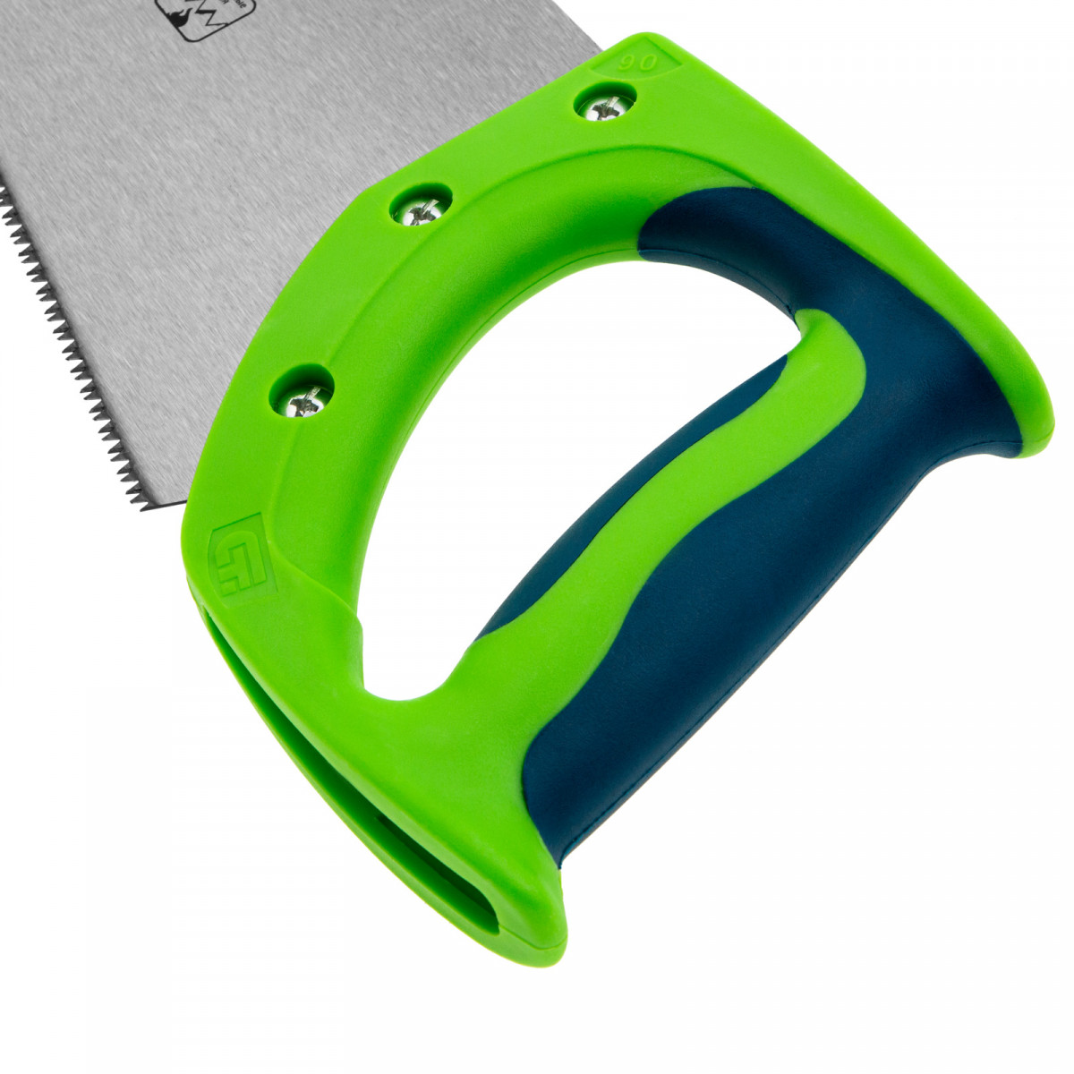 • Рукоятка из ударопрочного пластика прикреплена к полотну 3 винтами, что придает конструкции надежность.