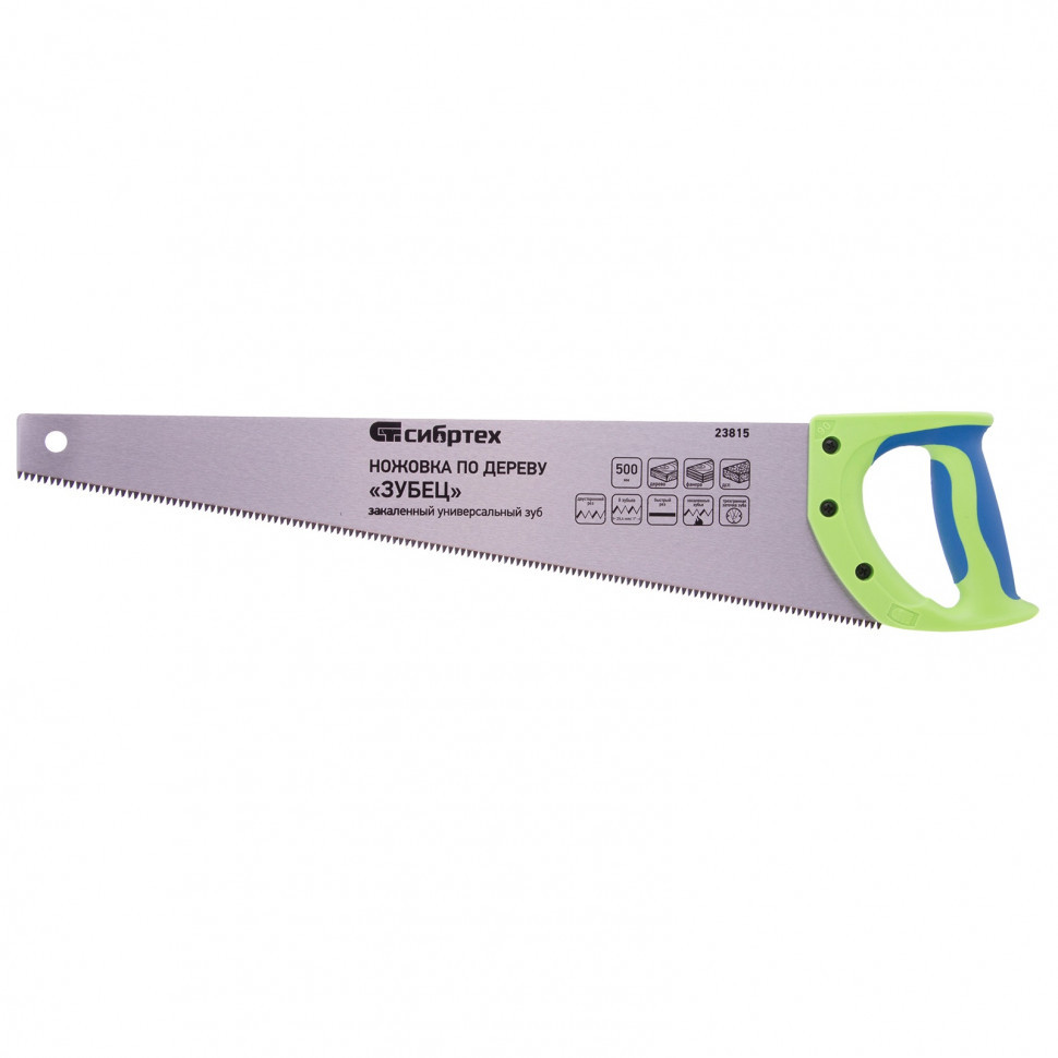 Ножовка по дереву "Зубец", 500 мм, 7-8 TPI, каленый зуб 3D, двухкомпонентная рукоятка Сибртех
