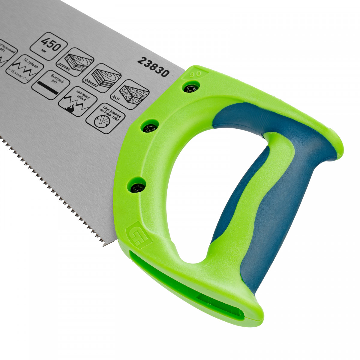 • Комфорт во время работы — рукоятка обрезинена, поэтому не скользит в ладони и снижает нагрузку на кисть руки во время длительного пиления.